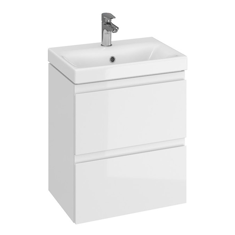 Baza si lavoar ceramic CS9731, mobilier baie suspendat 50 cm, dreptunghiular, front MDF, 2 sertare, glisiere soft close, alb, ofera o atmosfera calda si primitoare baii dumneavoastra.