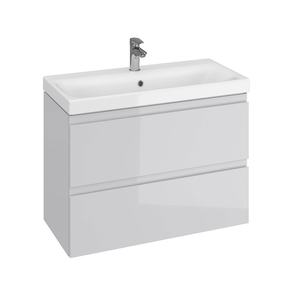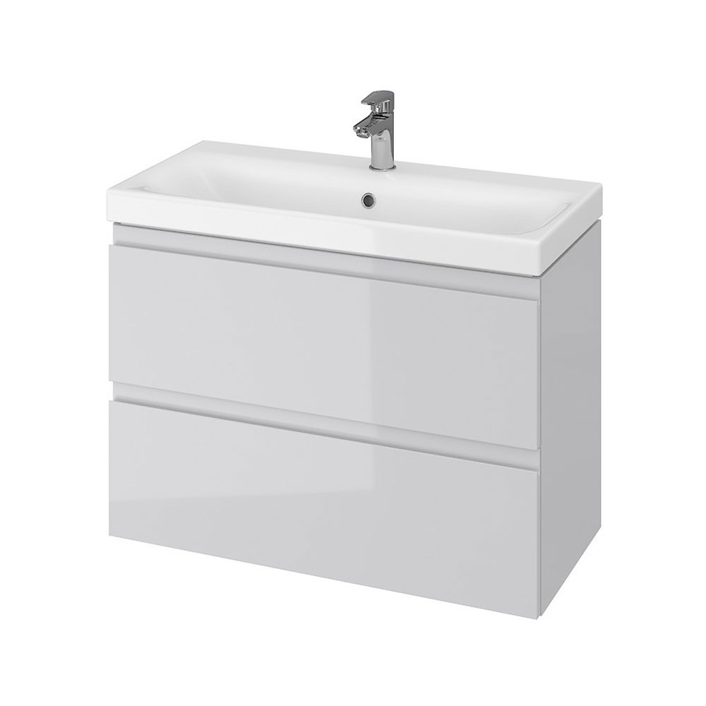 Baza si lavoar ceramic CS9741, mobilier baie suspendat 80 cm, dreptunghiular, front MDF, 2 sertare, glisiere soft close, gri