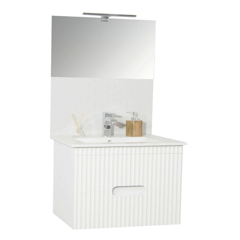 Fabricat din MDF vopsit pentru fronturi si PAL pentru laterale, acest corp de baie cu lavoar este conceput sa reziste in mediul umed al baii, fara a compromite stilul.