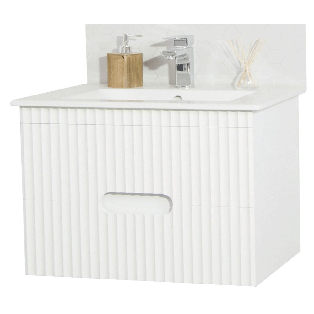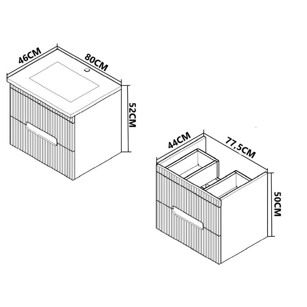 Baza si lavoar ceramic GN0091, mobilier baie suspendat 80 cm, dreptunghiular, front MDF, sertare soft close, alb