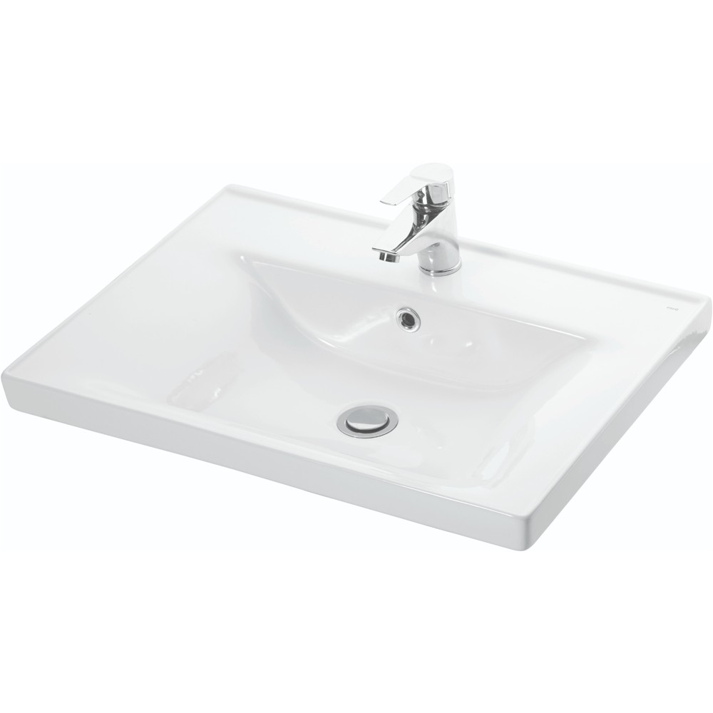 Modernitatea acestui set pentru baie este obtinuta prin forma mai putin comuna a lavoarului. Lavoarul din ceramica pastreaza forma dreptunghiulara a bazei, avand o adancime de 46 cm.