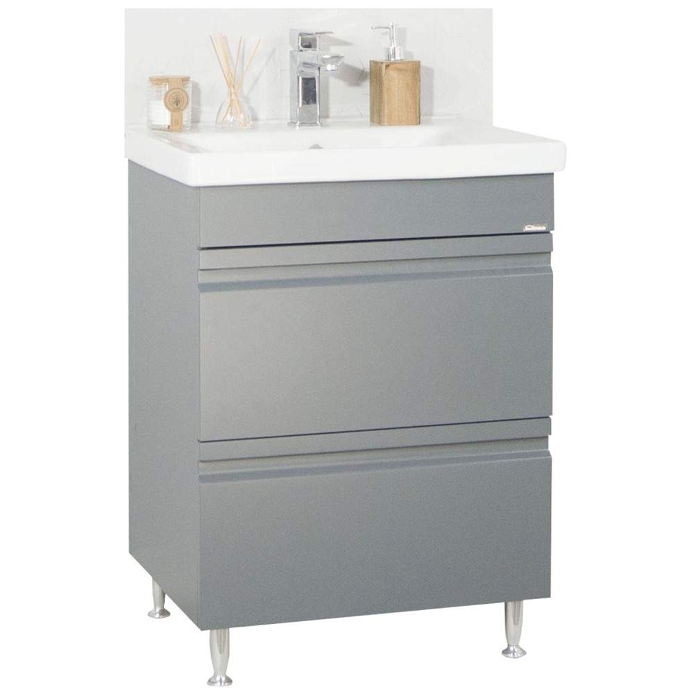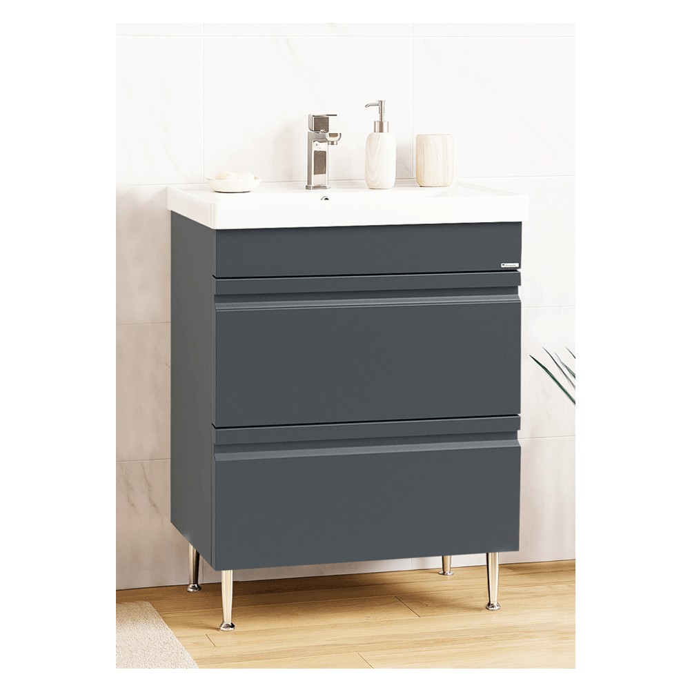 Baza si lavoar ceramic GN7861, mobilier baie suspendat 60 cm, dreptunghiular, front MDF, sertare soft close, antracit