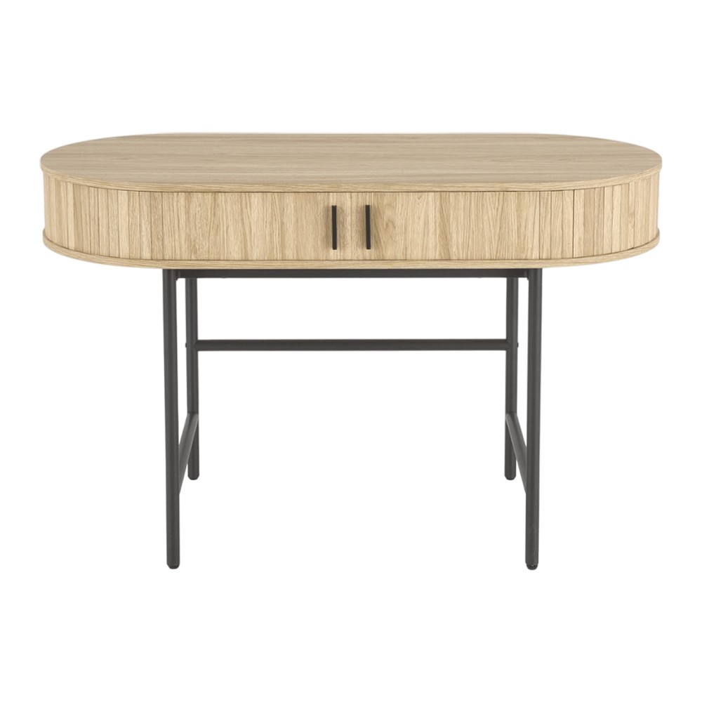 Blatul cu finisaj natur si cadrul metalic negru creeaza un contrast armonios, potrivit pentru interioare in stil boho, scandinav sau industrial. Realizat din materiale durabile si usor de integrat in orice decor, acest birou aduce un aer boem si rafinat in orice colt de acasa sau birou.