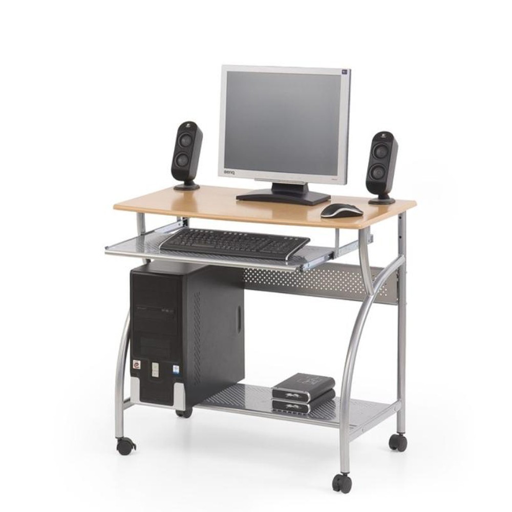 Biroul este dotat cu polita glisanta pentru tastatura. In plus, acesta se poate muta usor datorita rotilor din polipropilena.