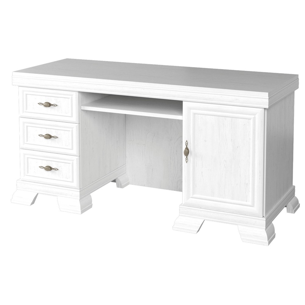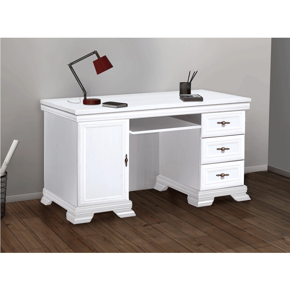 Fabricat din PAL Melaminat si decorat cu plinte din MDF, biroul VMB are multiple spatii de depozitare : 3 sertare, un compartiment cu usa in partea stanga si o polita culisanta pentru tastatura.Â