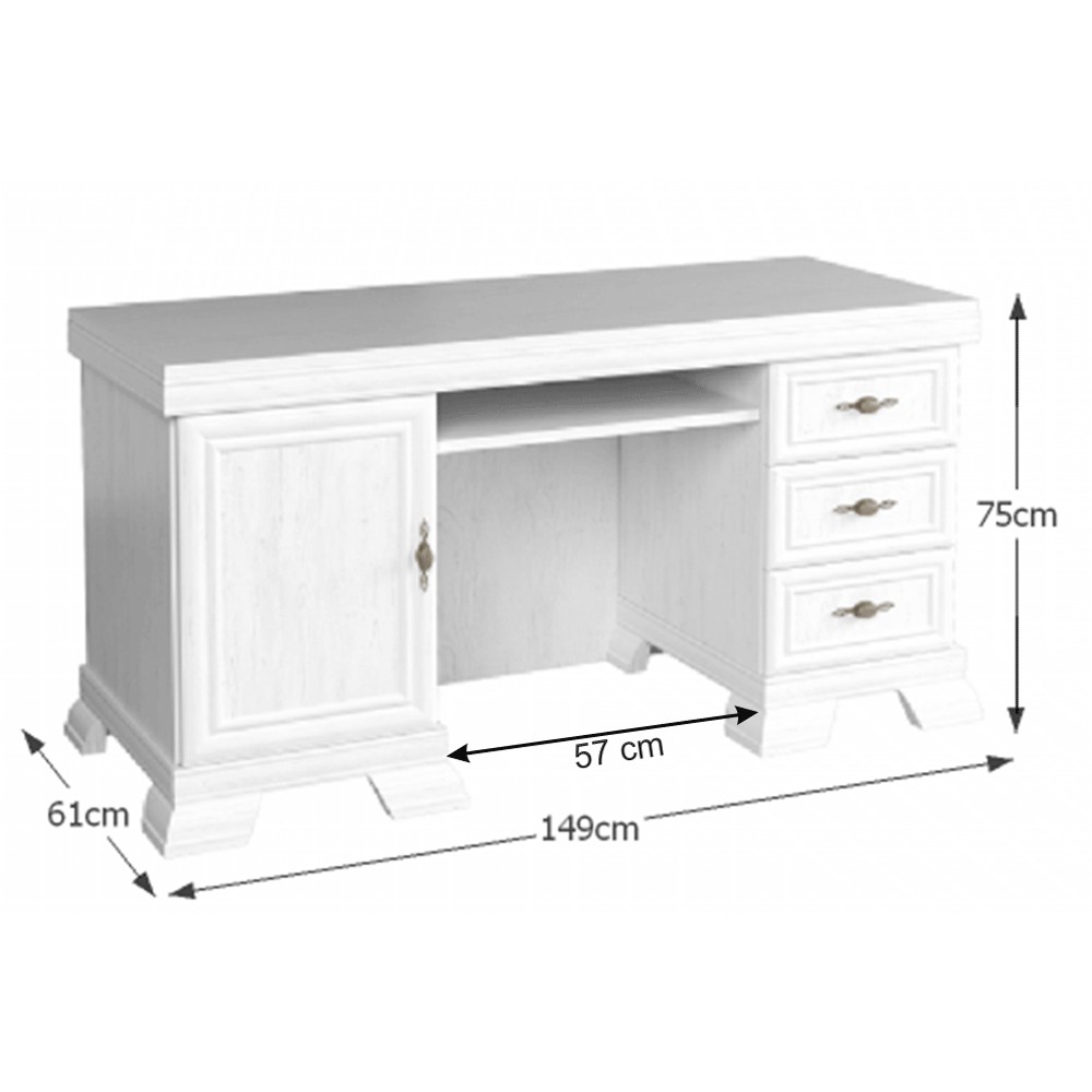 Blatul biroului are grosimea de 22 mm, culoarea alb antichizat si o lungime de 149 cm. Suprafata biroului permite mult spatiu pentru orice sarcina sau multi-sarcina. Â