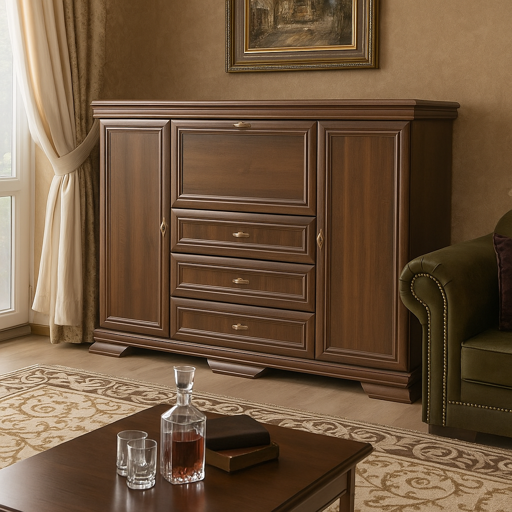 Visezi la un interior rustic autentic, care sa emane caldura si confort? Atunci comoda VM6P este piesa de mobilier ideala pentru a transforma livingul tau intr-un spatiu primitor si plin de personalitate. Inspirata de stilul traditional, aceasta comoda rustica imbina perfect estetica clasica cu functionalitatea moderna, oferind solutii inteligente de depozitare si un design rafinat.