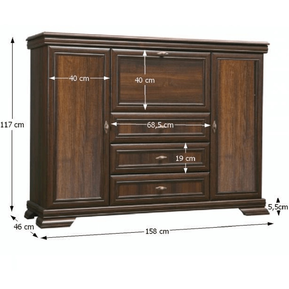 Comoda VM6P impresioneaza prin detaliile sale atent lucrate, liniile robuste si finisajul elegant nuc. Realizata din PAL melaminat de inalta calitate, cu plinte din MDF, aceasta comoda garanteaza durabilitate si rezistenta in timp. Fiecare element, de la textura lemnului pana la accesoriile metalice, contribuie la crearea unui aspect rustic autentic, perfect pentru un living rustic.