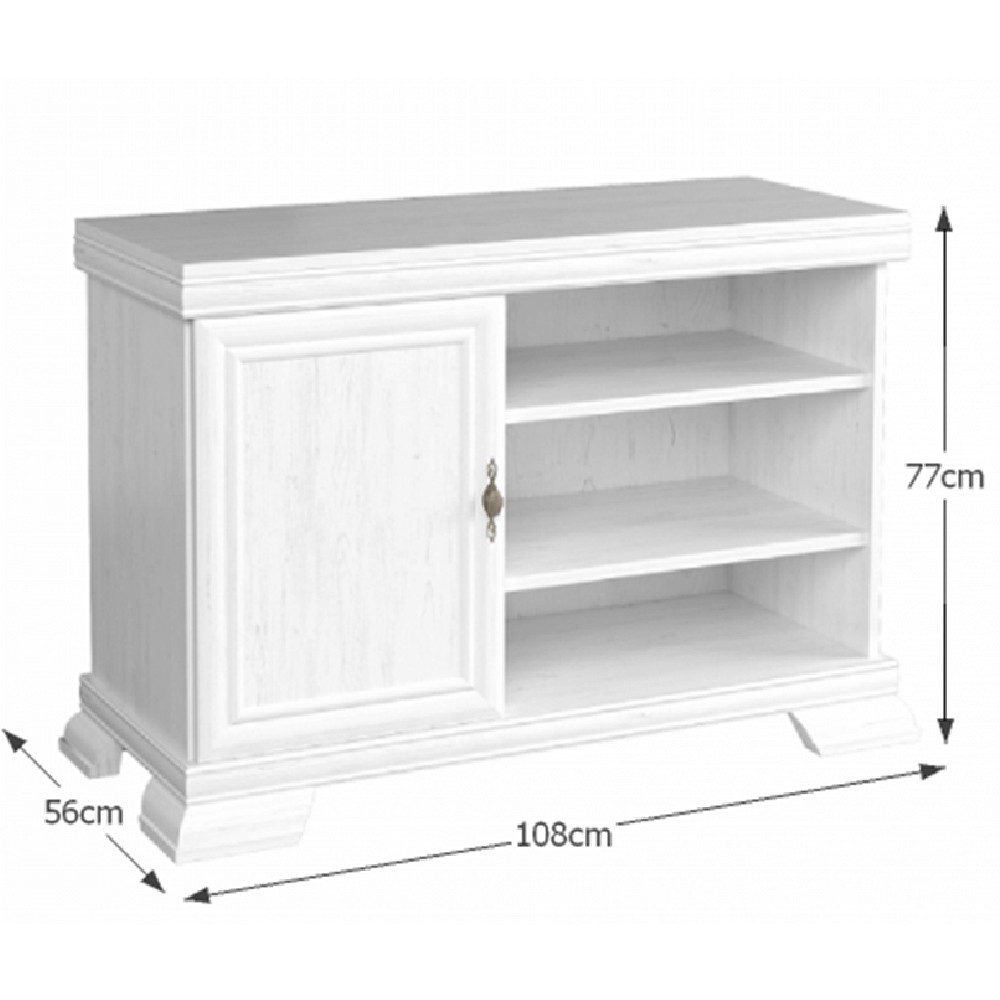 Comoda retro VMT este impartita in doua parti cu si fara usi si asigura spatiu suficient pentru depozitare, dar si pentru a aseza televizorul.Â