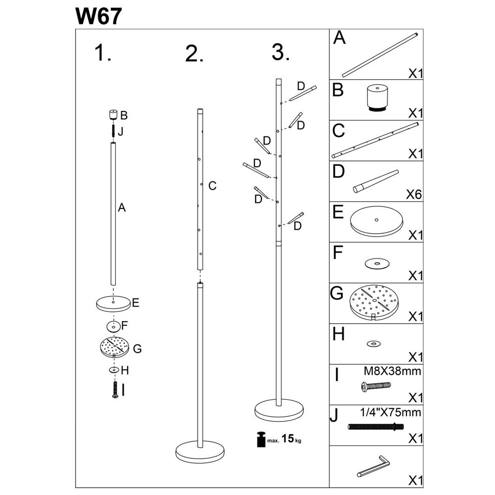 Cu un diametru al bazei de 28 cm si o inaltime de 174 cm, cuierul HM W67 ocupa putin spatiu, dar ofera suficient loc pentru a organiza eficient hainele, gentile sau accesoriile. Este prevazut cu 6 agatatori rezistente, dispuse ergonomic pentru a permite distribuirea greutatii si a evita aglomerarea. Fiecare agatatoare suporta pana la 1 kg, conform recomandarilor producatorului, oferind astfel o solutie echilibrata si durabila pentru uz zilnic.