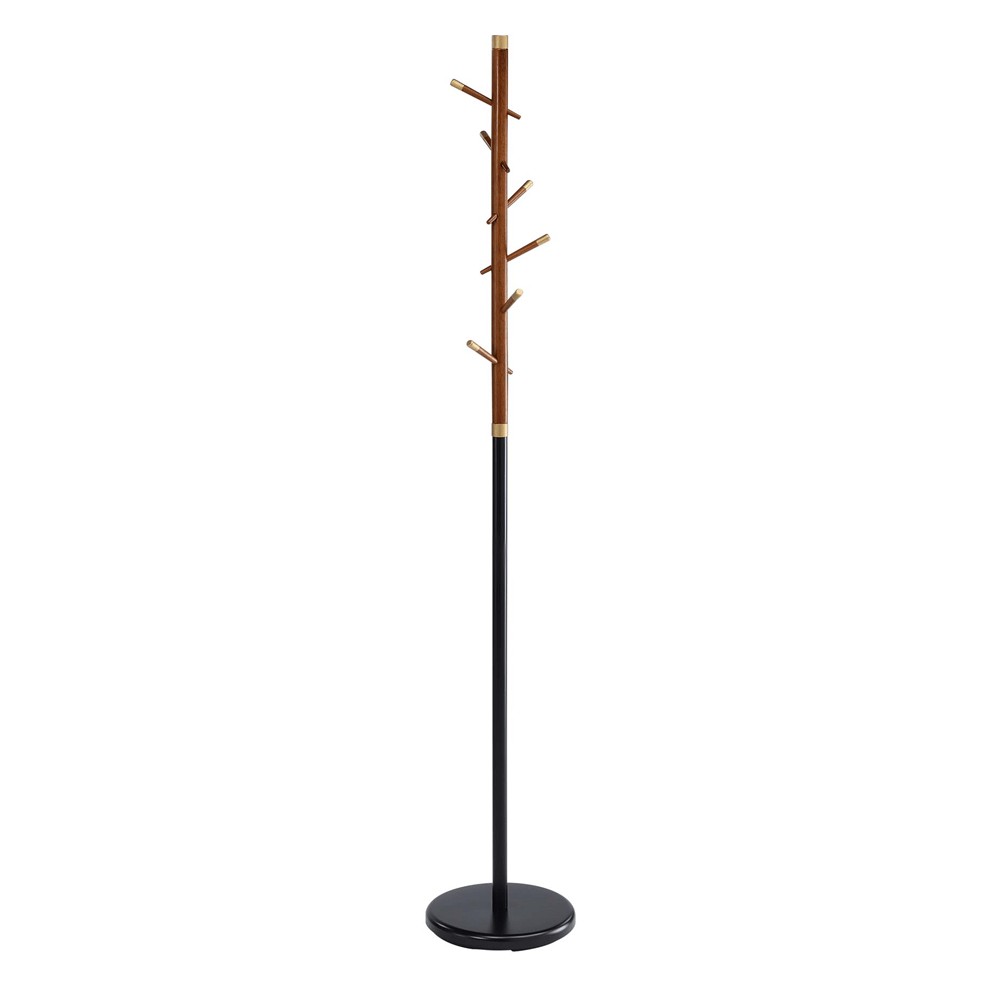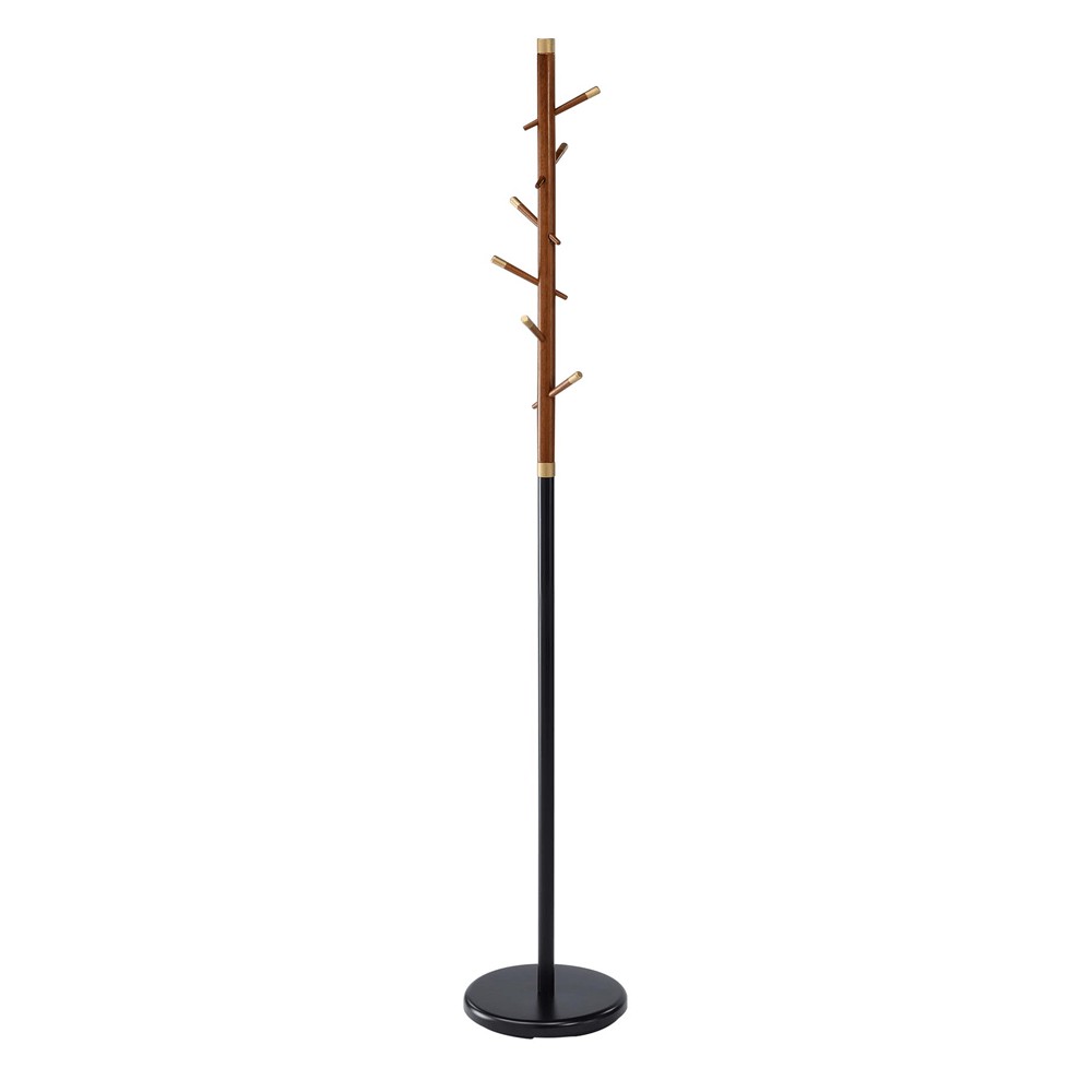 Cuier tip pom HM W67, cu baza metalica, 6 agatatori cromate, stil modern, de podea, negru-nuc