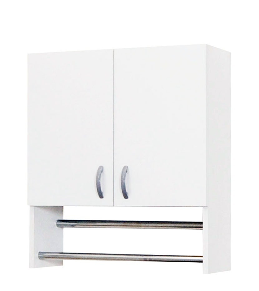 Un dulap complex ce satisface nevoi multiple : depozitare articole menajere si cosmetice in interior si suport pentru prosoape in exterior.Â