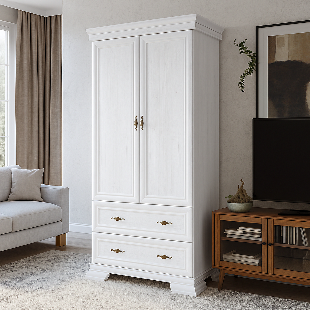 Prevazut in partea superioara cu bara, dulapul VMS1 va ajuta sa depozitati haine cu volum pastrandu-le netede. In partea inferioara dulapul este prevazut cu doua sertare cu adancimea de 19 cm ce va vor ajuta sa pastrati in ordine alte obiecte vestimentare mici.Â