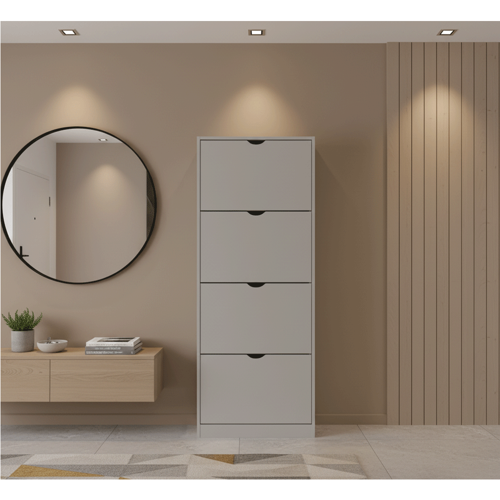 Spune adio haosului din hol! Pantofarul KL Carey Gri dispune de 4 sertare spatioase, fiecare dotat cu rafturi interioare duble, oferind spatiu suficient pentru incaltamintea intregii familii. Fie ca este vorba despre pantofi casual, sandale, ghete sau papuci, fiecare pereche isi va gasi locul potrivit. Cu un sistem de deschidere practic si acces facil, vei gasi mereu rapid incaltamintea dorita. Acest pantofar cu sertare este ideal pentru familii moderne care isi doresc un hol ordonat si usor de intretinut.