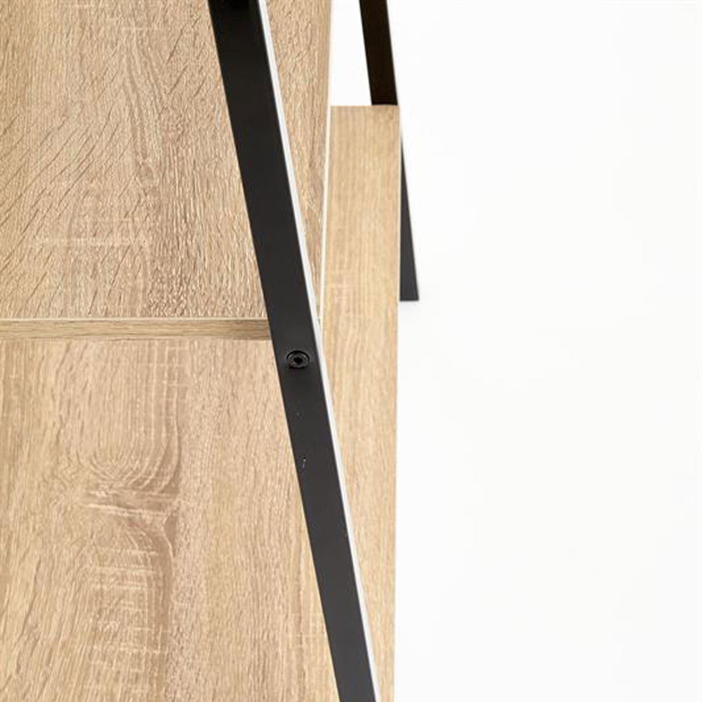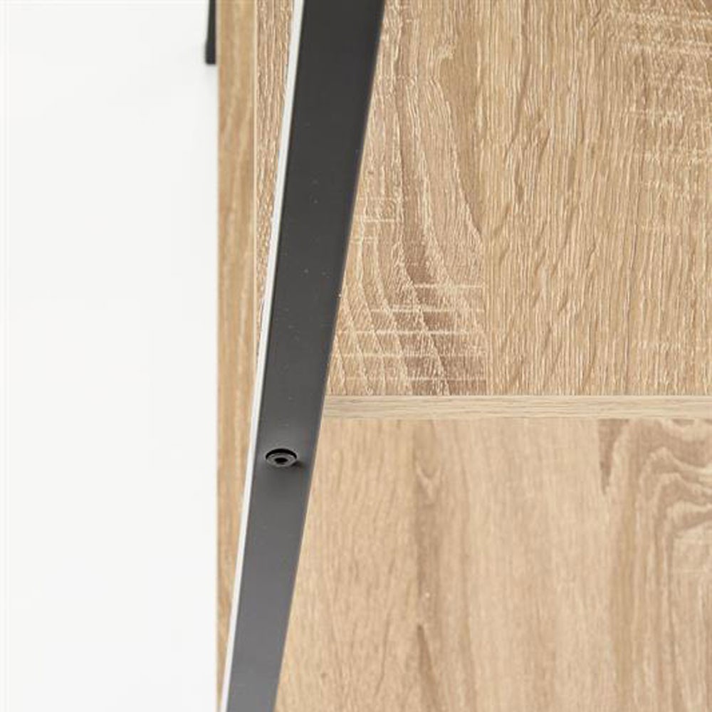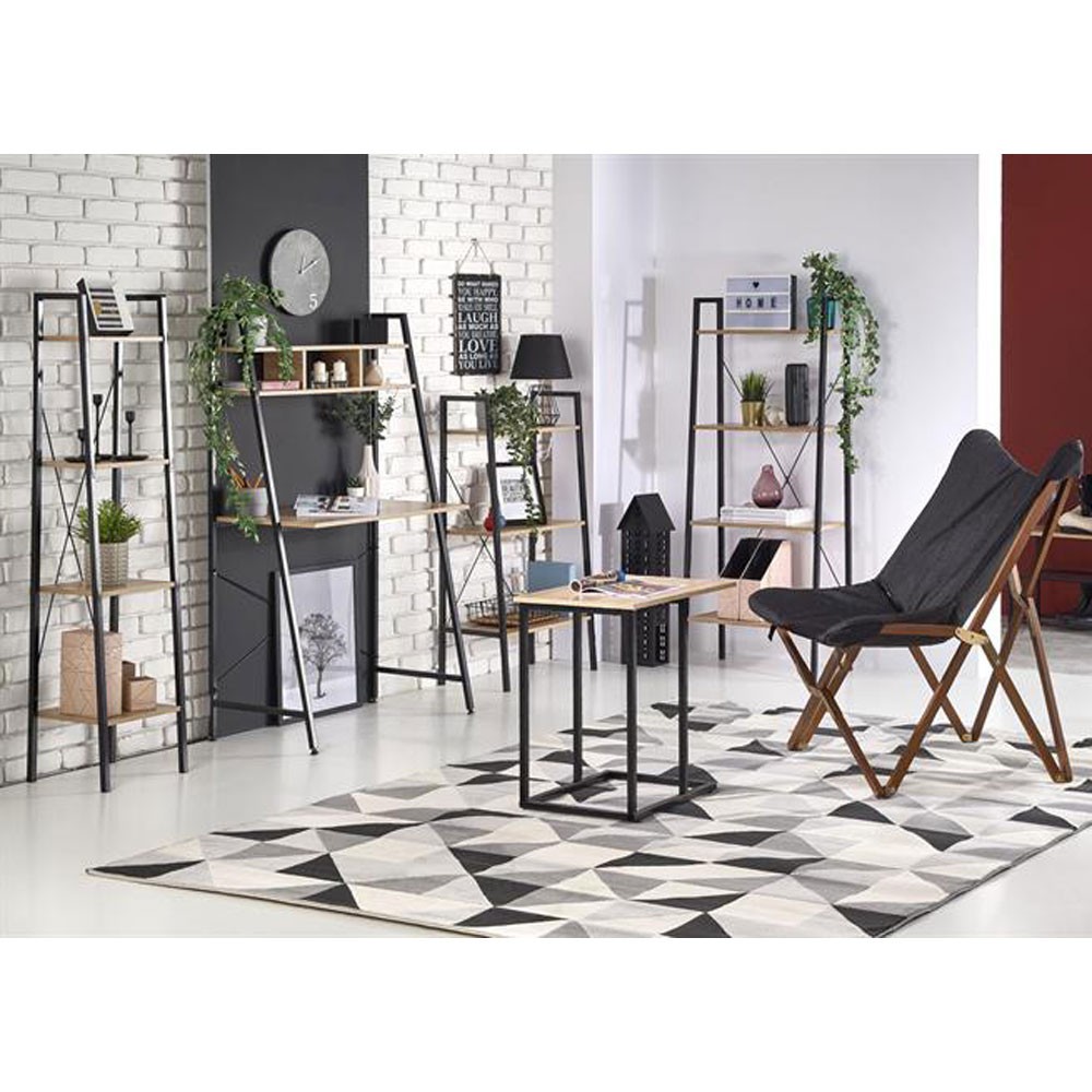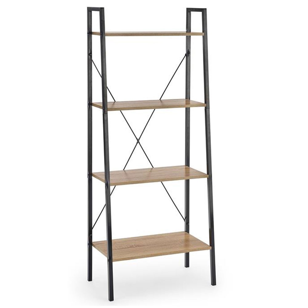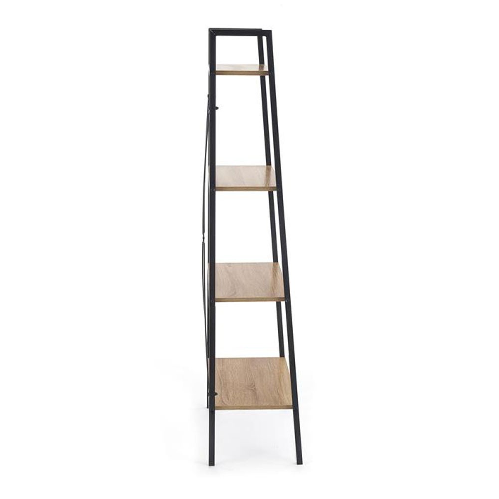 Are structura metalica de culoare neagra cu 4 polite din PAL culoare stejar sonoma si poate fi integrata in living, dormitor sau birou si ofera spatiu de se stocare si organizare generos.