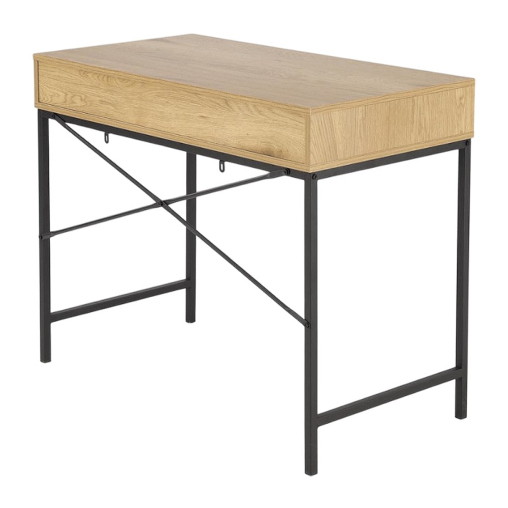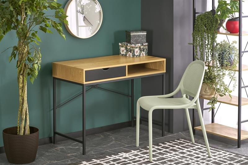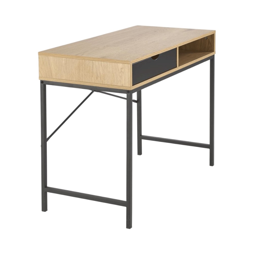Birou B50, Natur/Negru – compact, modern-industrial, cu structura metalica solida si blat din MDF furniruit.