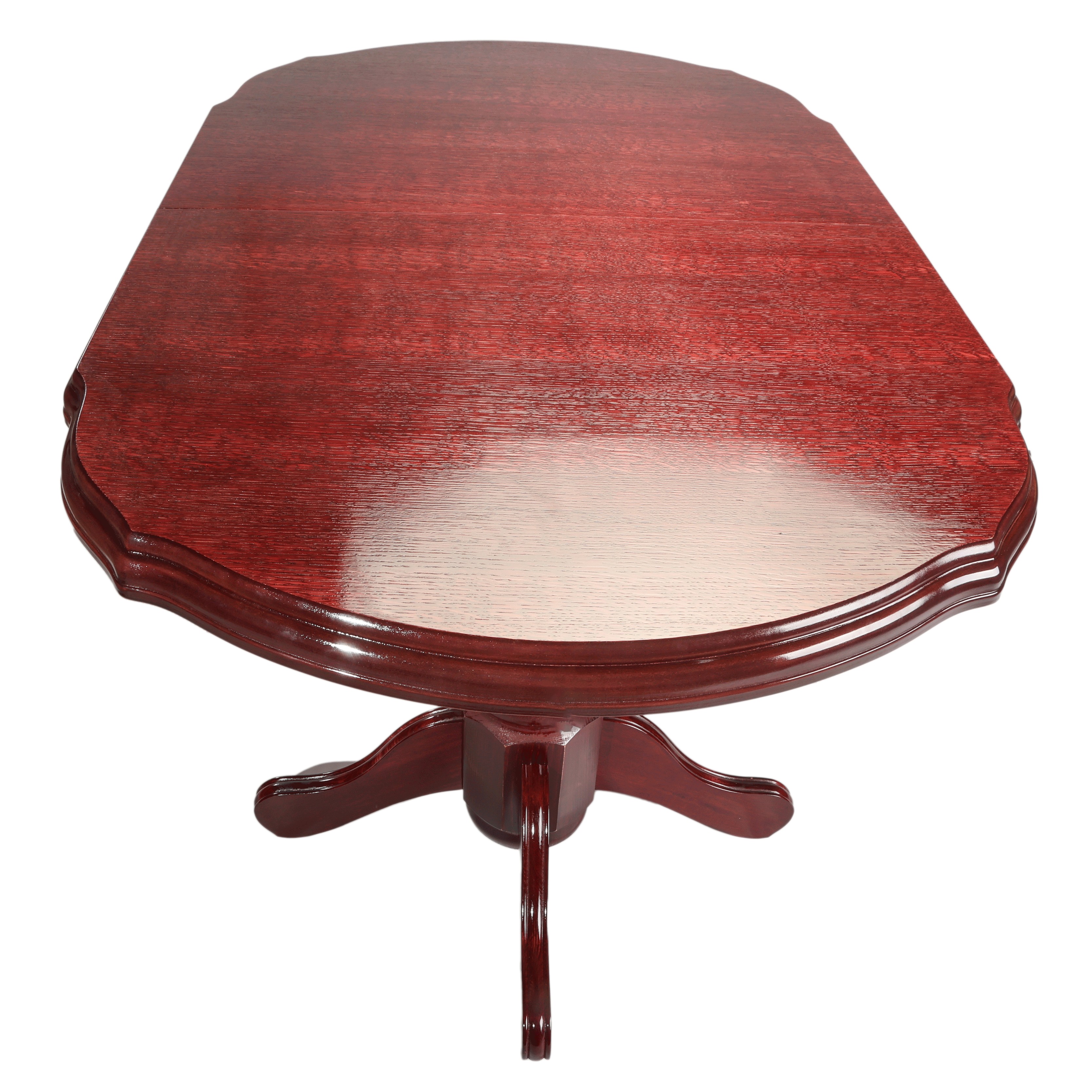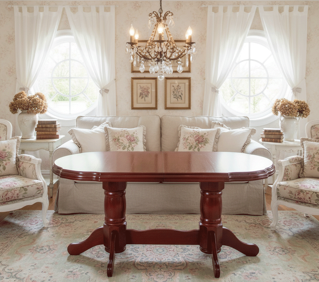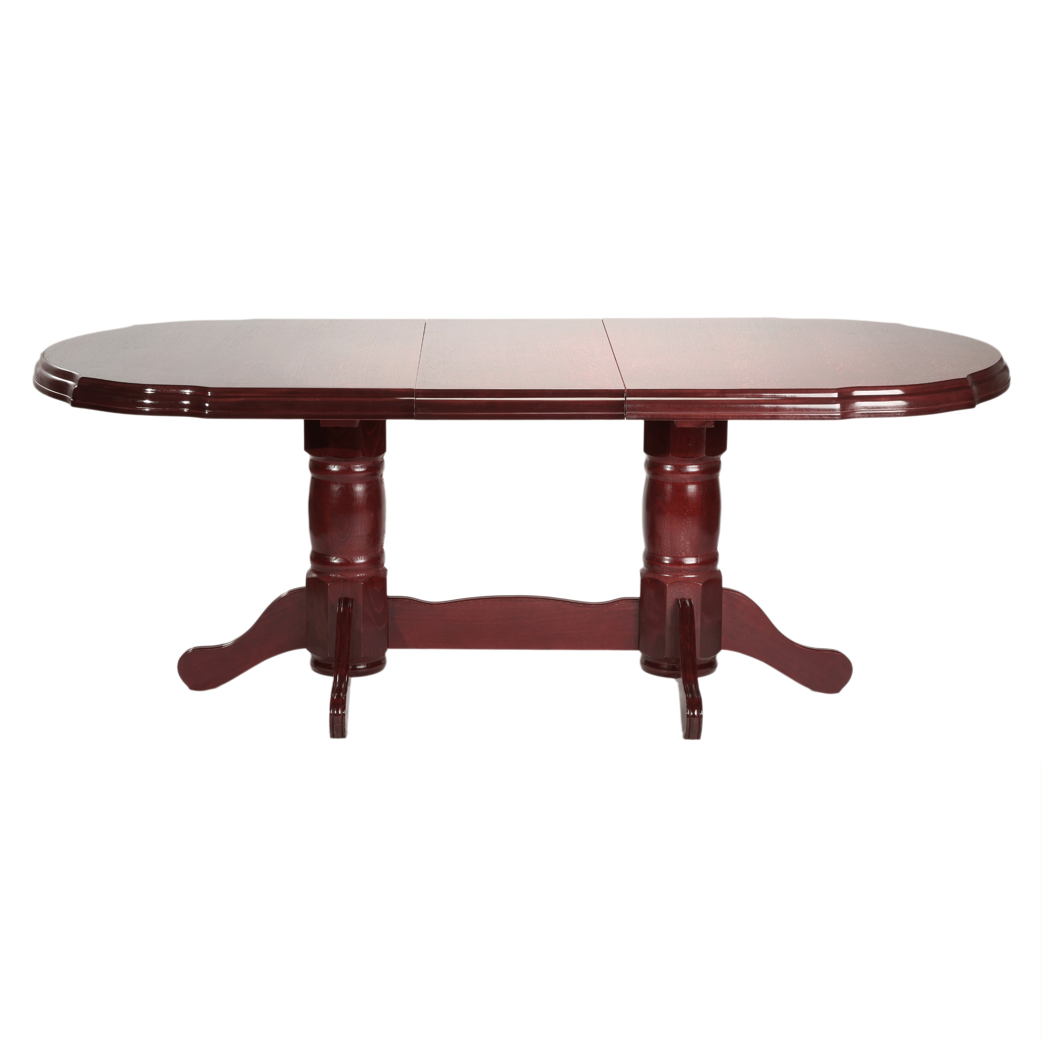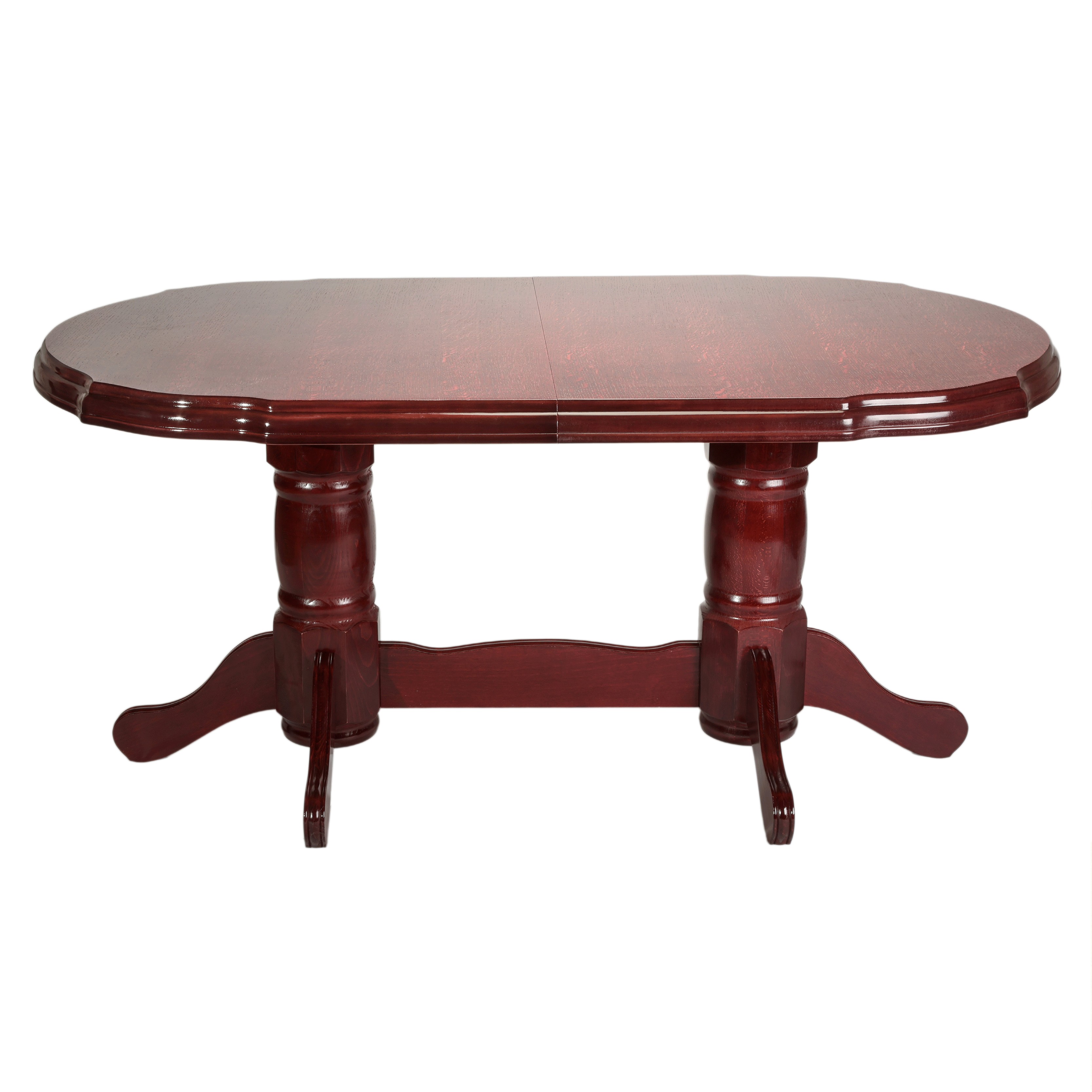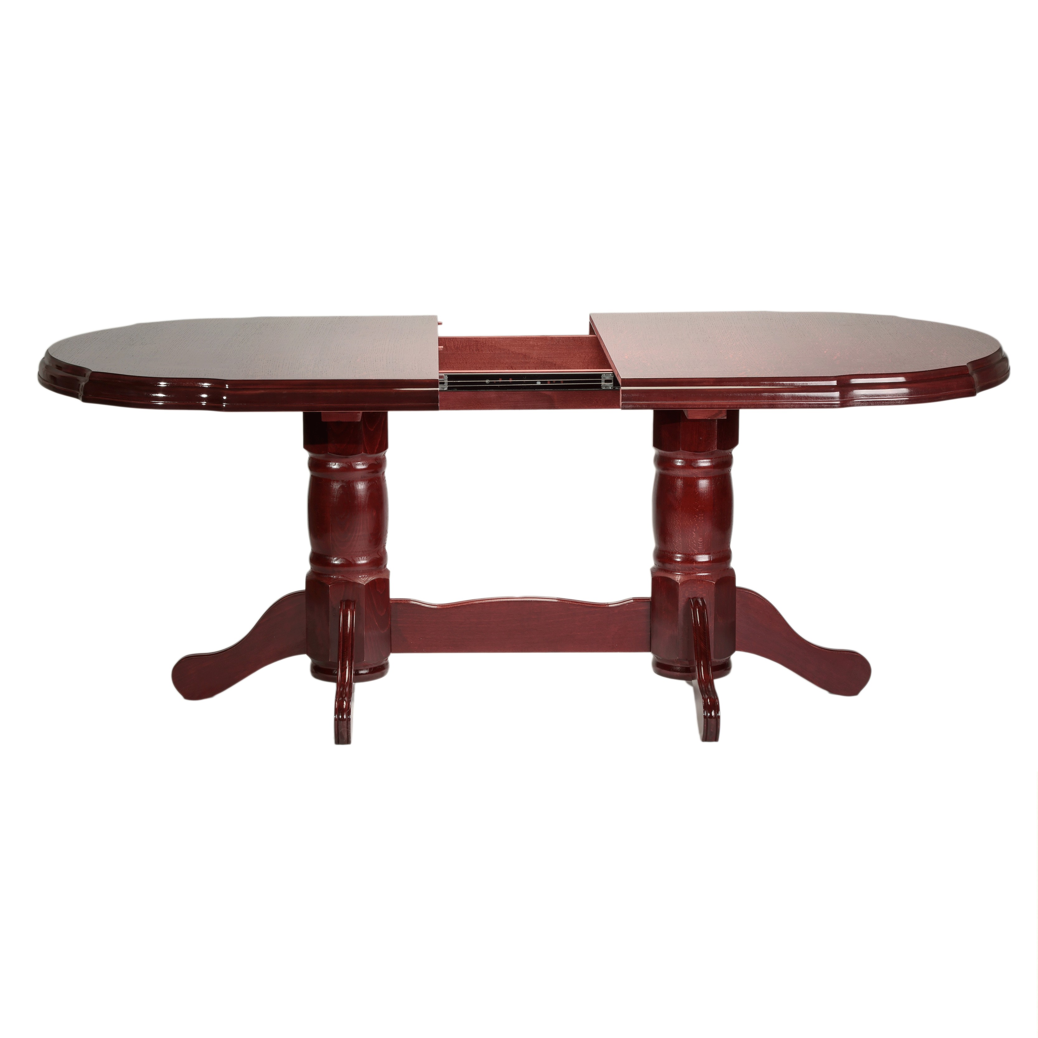 Masa extensibila cu blat din MDF furniruit lacuit si structura din lemn masiv lacuit este o masa impunatoare, eleganta, potrivita incaperilor in stil clasic.