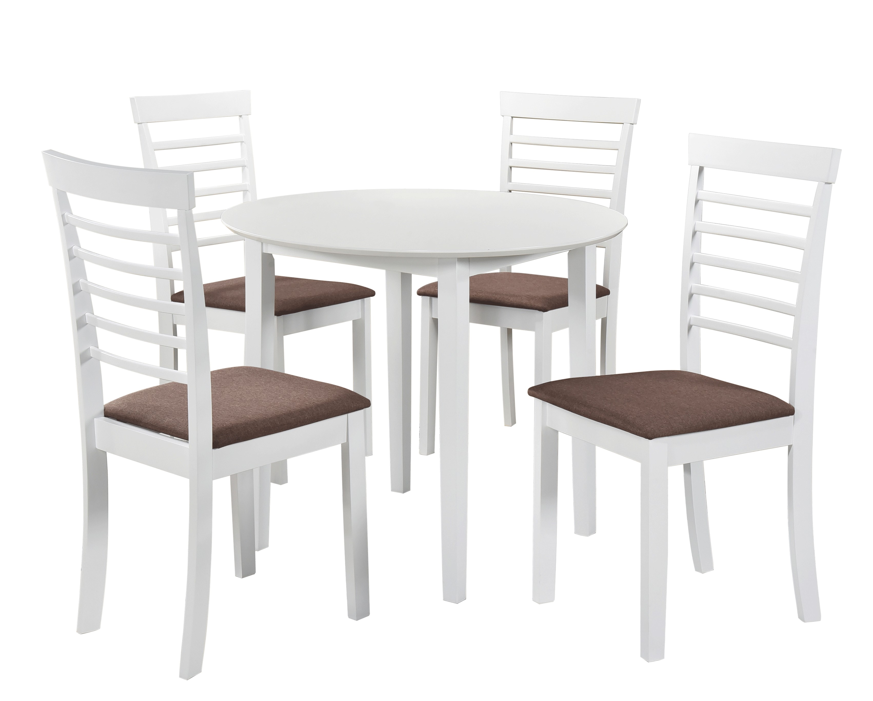 Masa rotunda bucatarie/living cu diametru de 90 cm, alb lacuit, blat MDF 17 mm, picioare lemn – eleganta si durabila, ideala pentru 3-4 persoane. Design modern, usor de integrat in orice decor.