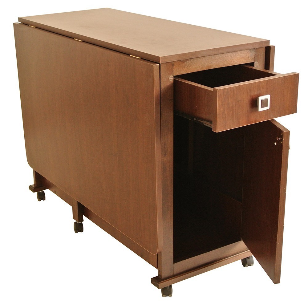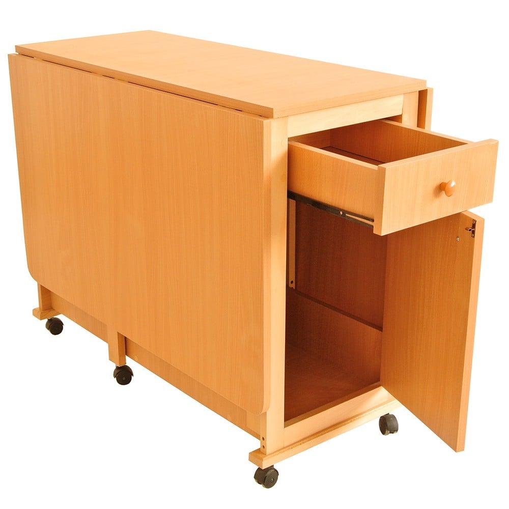 Masa plianta cu usa si sertar este o masa foarte utila pentru cei care isi doresc o masa in living, dar nu dispun de spatiu suficient sau nu vor sa tina spatiul ocupat tot timpul cu o masa. Aceasta se pliaza si se depoziteaza cu usurinta intr-un colt al camerei, ea ocupand foarte putin loc – are latimea de 45 cm in pozitie pliata. Ea poate avea si o alta functionalitate atunci cand este stransa si anume poate servi drept suport pentru carti, reviste , obiecte decorative… Daca este extinsa, ea ofera un confort maxim pentru musafirii dumneavoastra, la ea putandu-se acomoda pana la 8 persoane.