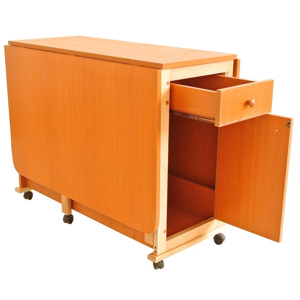 Masa plianta cu usa si sertar este o masa foarte utila pentru cei care isi doresc o masa in living, dar nu dispun de spatiu suficient sau nu vor sa tina spatiul ocupat tot timpul cu o masa. Aceasta se pliaza si se depoziteaza cu usurinta intr-un colt al camerei, ea ocupand foarte putin loc – are latimea de 45 cm in pozitie pliata. Ea poate avea si o alta functionalitate atunci cand este stransa si anume poate servi drept suport pentru carti, reviste , obiecte decorative… Daca este extinsa, ea ofera un confort maxim pentru musafirii dumneavoastra, la ea putandu-se acomoda pana la 8 persoane.