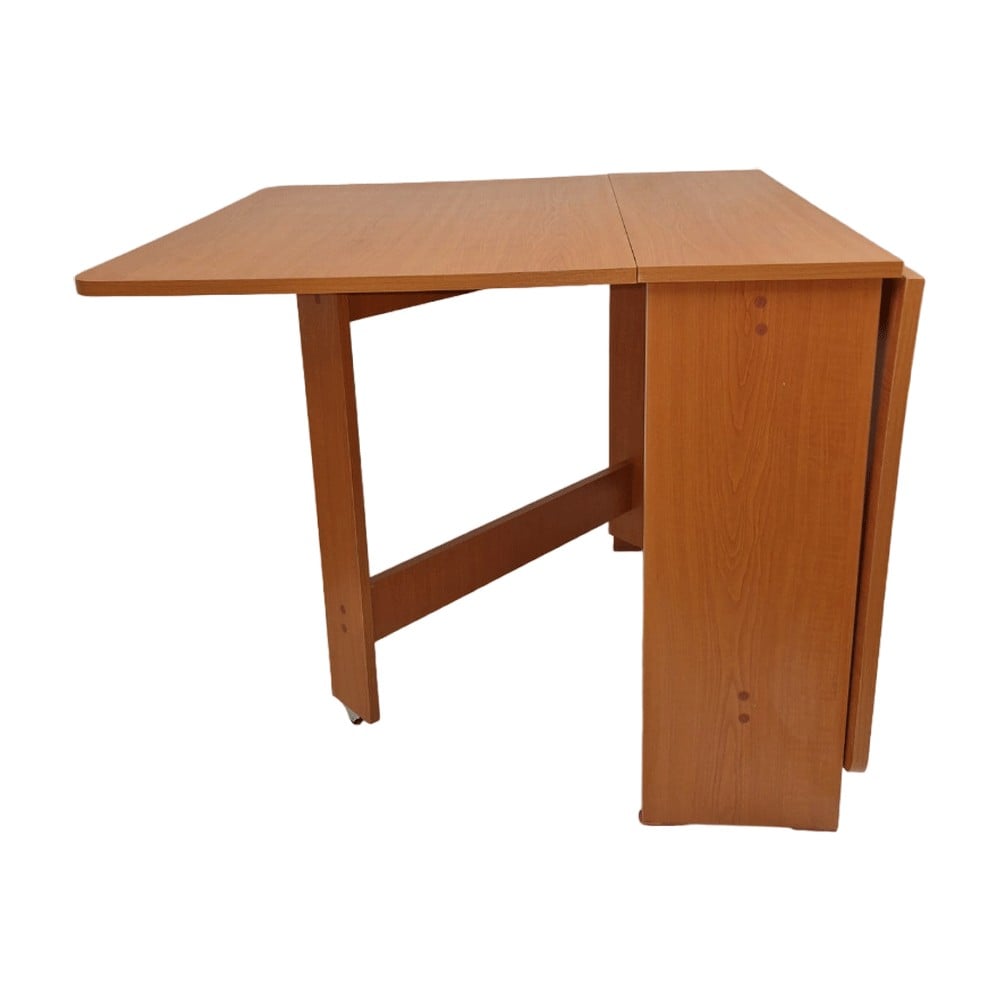 Masa MD1 este realizata din PAL melaminat si este usor de manevrat, ea putand fi pliata si extinsa cu usurinta de catre o singura persoana. Cele doua parti mobile de blat (partile care se ridica la extinderea mesei sau care se lasa atunci cand se pliaza masa) au colturile exterioare rotunjite pentru a nu va lovi in ele sau pentru a nu agata fata de masa.
