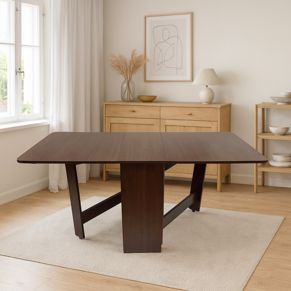 Masa MD1 este realizata din PAL melaminat si este usor de manevrat, ea putand fi pliata si extinsa cu usurinta de catre o singura persoana. Cele doua parti mobile de blat (partile care se ridica la extinderea mesei sau care se lasa atunci cand se pliaza masa) au colturile exterioare rotunjite pentru a nu va lovi in ele sau pentru a nu agata fata de masa.