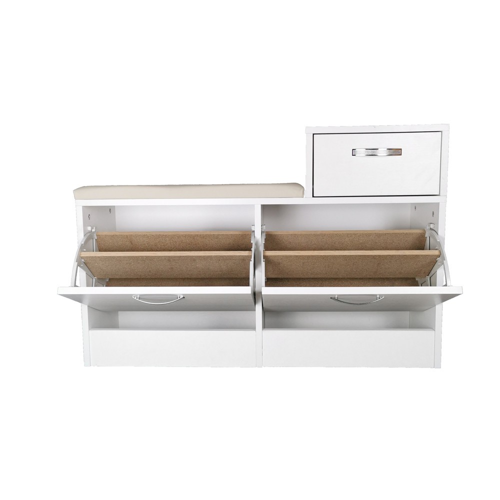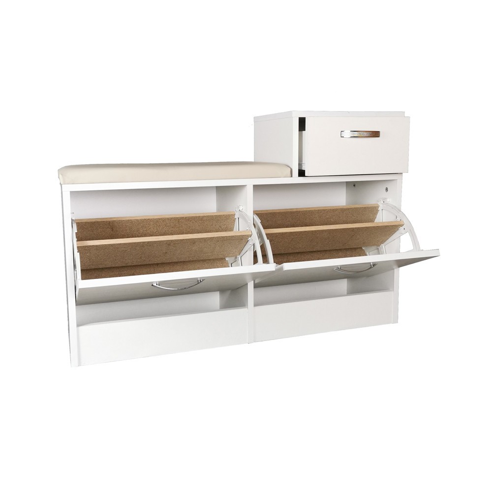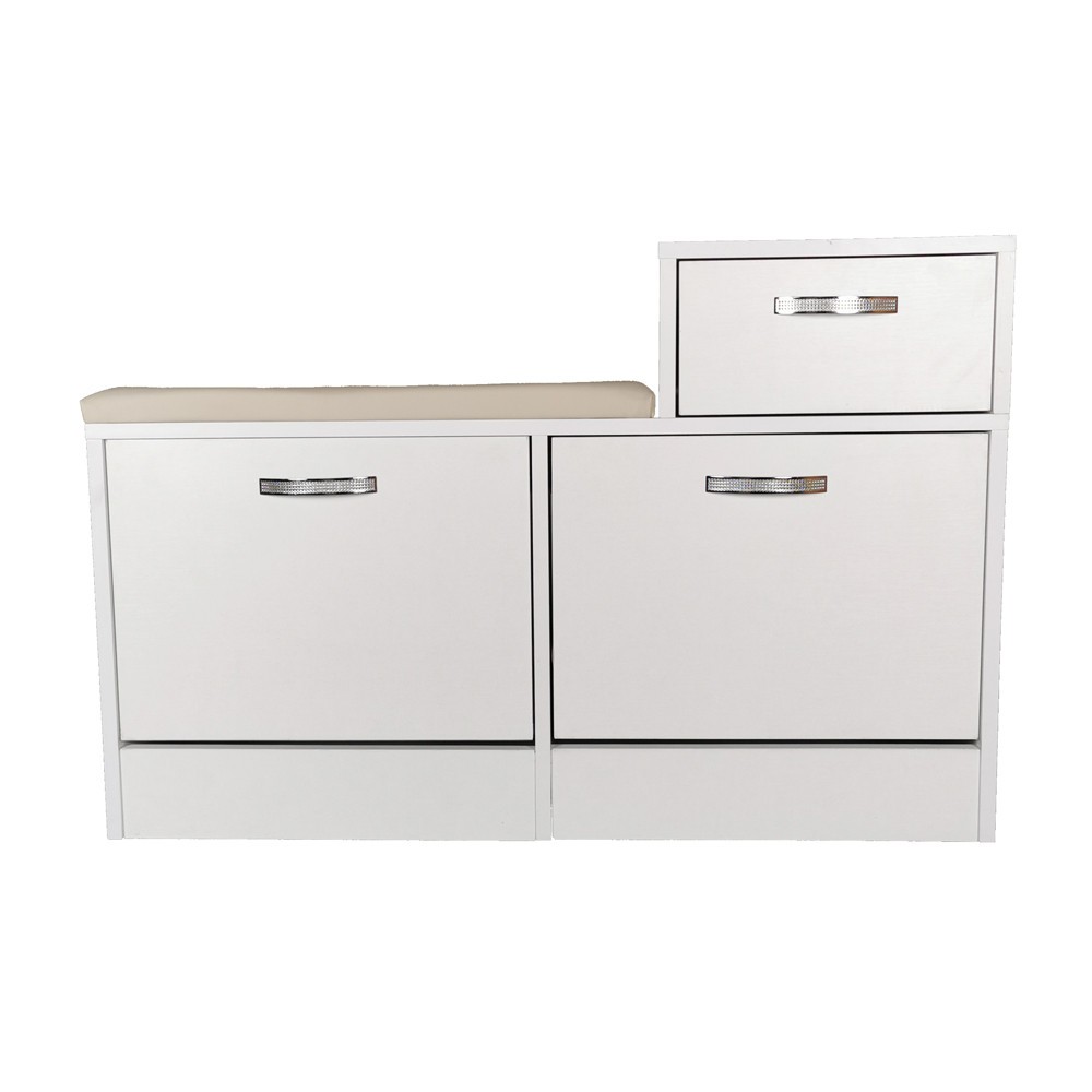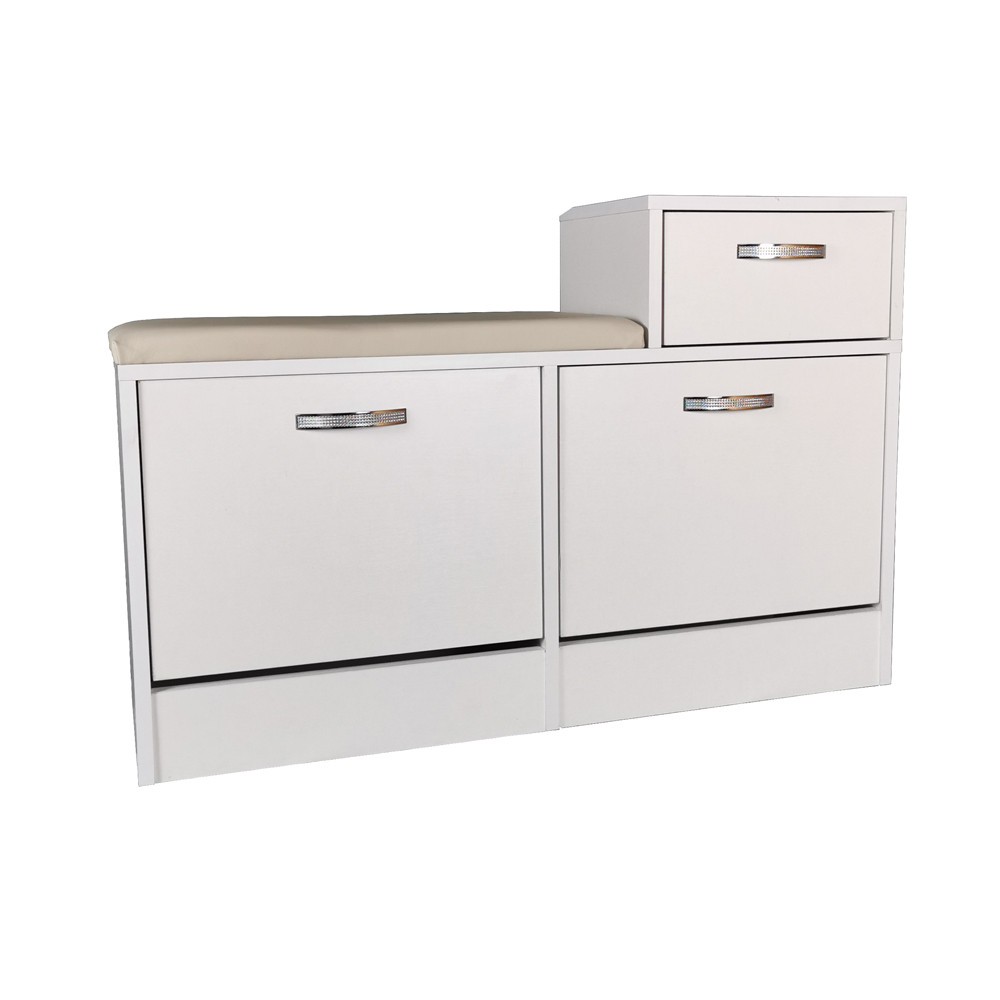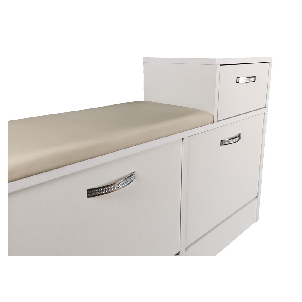 Acest pantofar in care incap in jur de 12 perechi de pantofi poate fi folosit si ca bancuta. Tapiterie sezut piele ecologica.