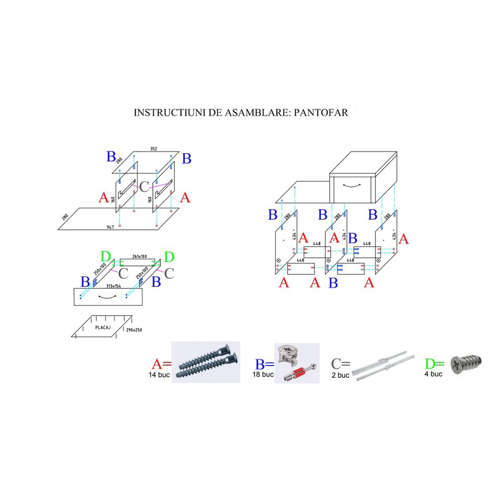 Feroneria si intructiunile de montaj sunt incluse in colet. Montajul acestui pantofar se face foarte usor, pe baza schitei de montaj.