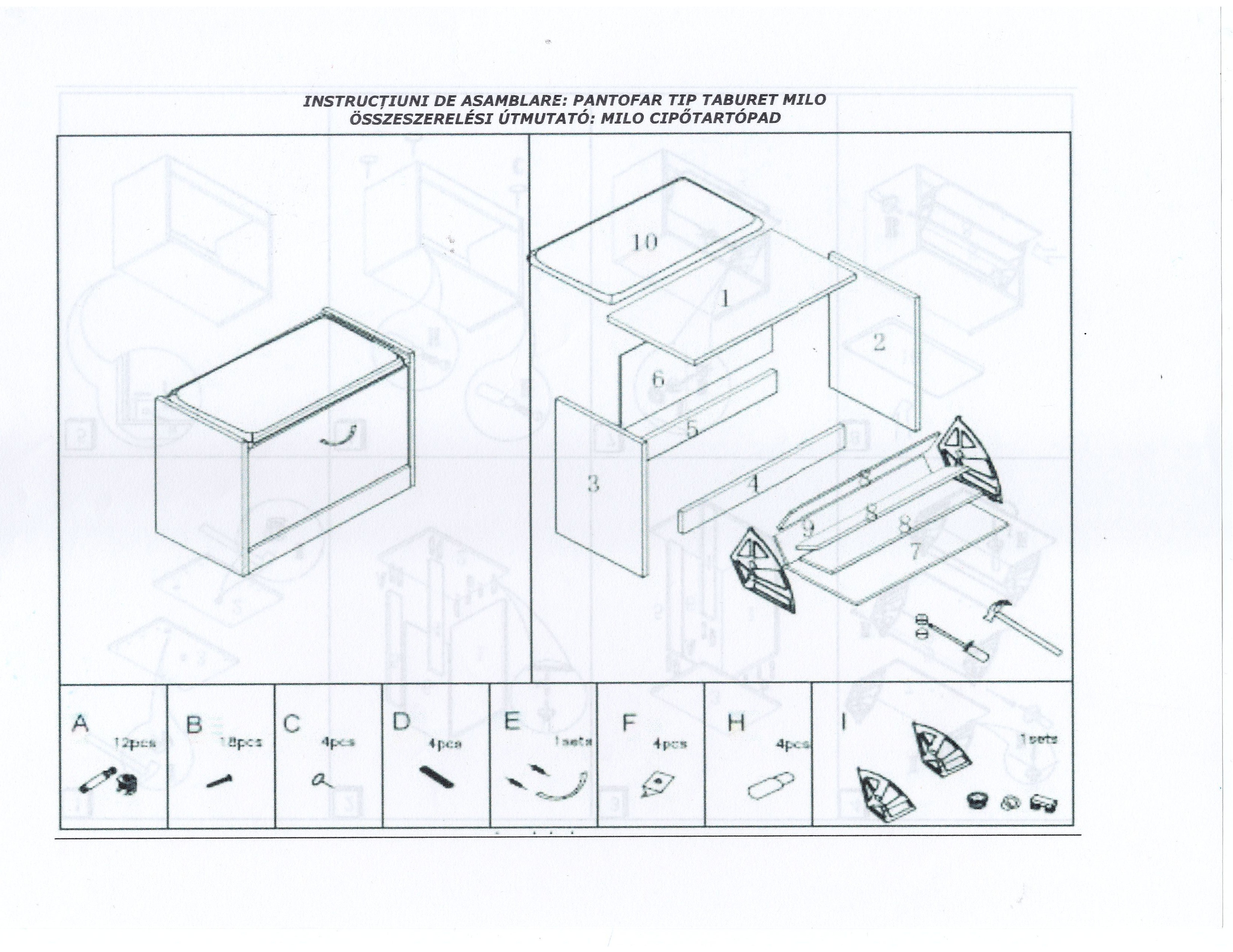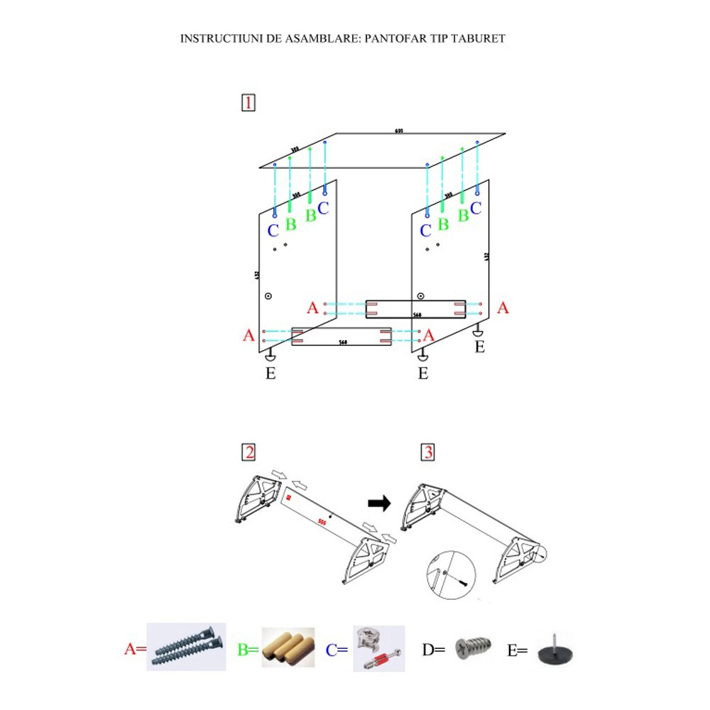 Pantofarul este fabricat din PAL. Acest pantofar se intretine/curata foarte usor (cu ajutorul unei carpe umede sau a unei solutii pentru mobila).