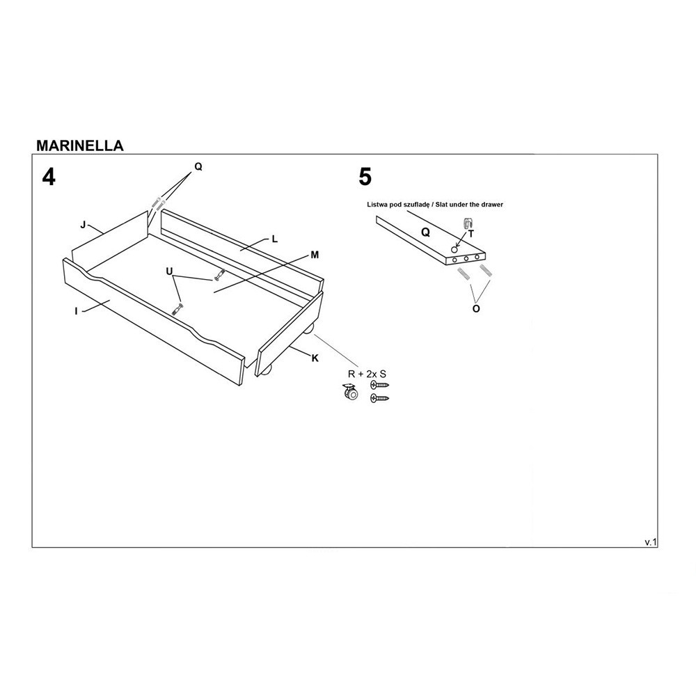 - este dotat cu un sertar. Acesta poate fi folosit pentru depozitarea lenjerie de pat, pilotei,pernelor sau jucariilor. Sistemul de deschidere este rezistent si usor de folosit, fiind pe role.