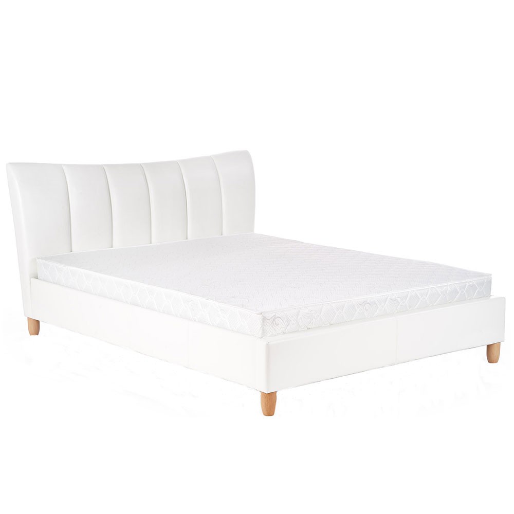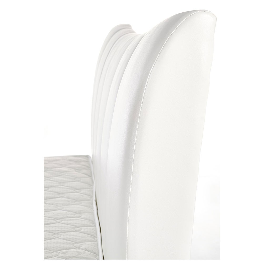 Tablia patului tapitata cu piele ecologica alba, placuta la atingere, liniile curbate si inaltimea de 100 cm, fac din aceasta un suport excelent, dar si stilat in acelasi timp.Â