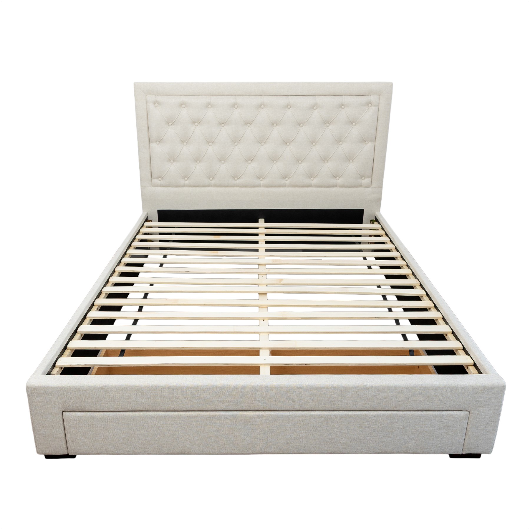 Tablia inalta de 123 cm, decorata cu butoni si cusaturi in romb, aduce un aer luxuriant si transforma patul intr-un punct central al incaperii. Tapiteria crem, moale si rezistenta, se potriveste atat in dormitoare moderne, cat si in decoruri clasice, adaugand luminozitate si rafinament.