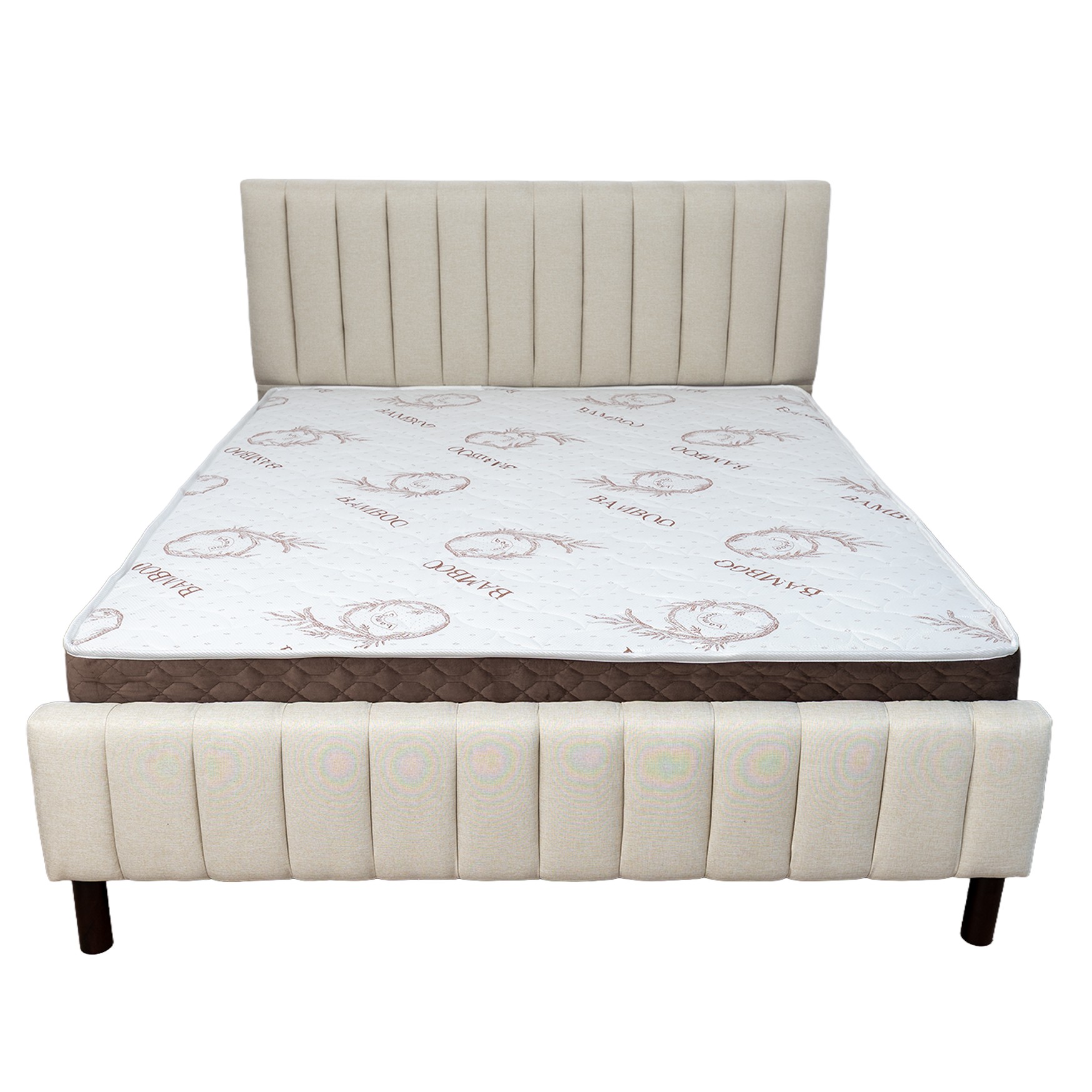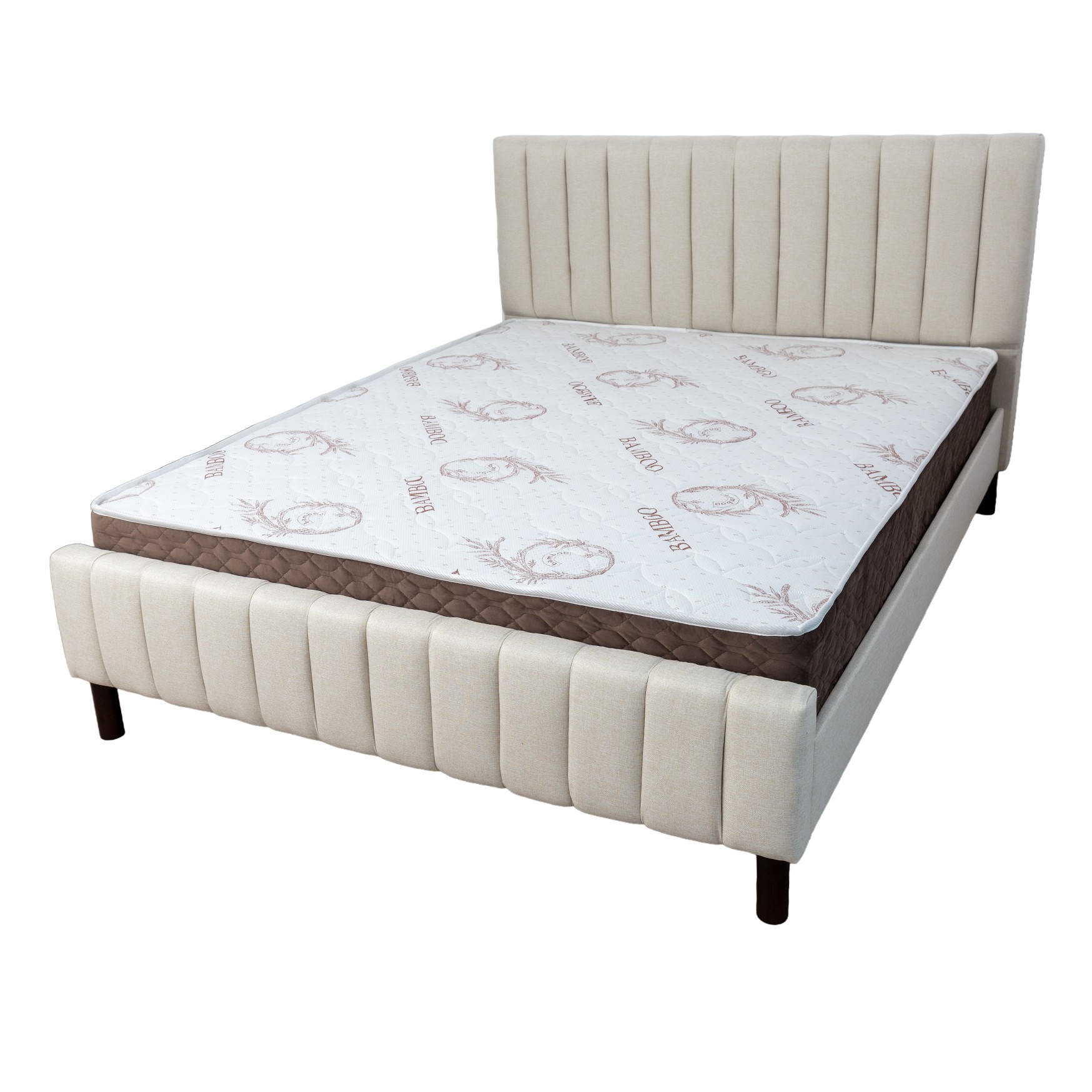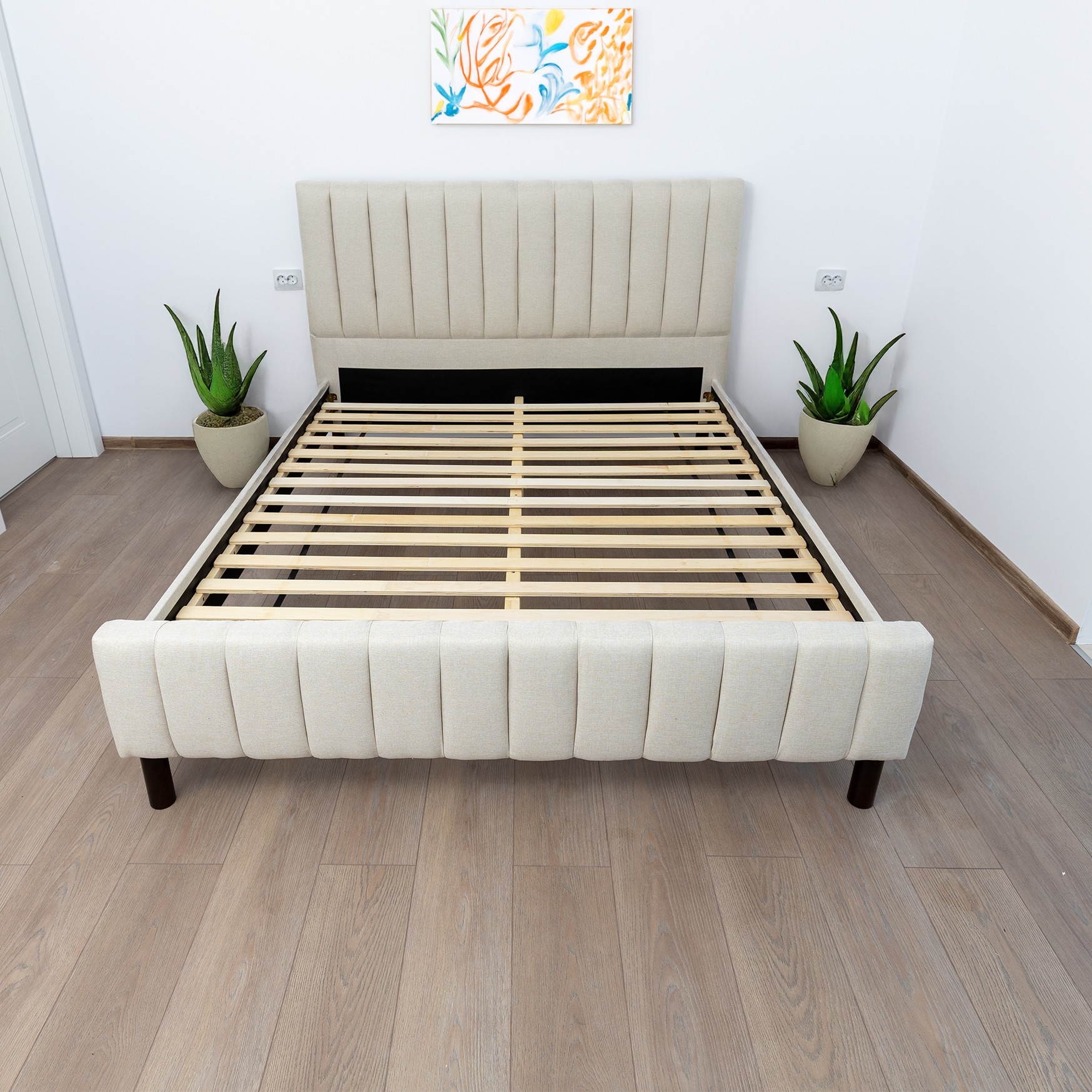 Detaliile conteaza: lateralele tapitate de 20 cm si distanta de 6 cm intre suportul lamelar si marginea superioara asigura fixarea optima a saltelei, creand un aspect armonios si elegant.