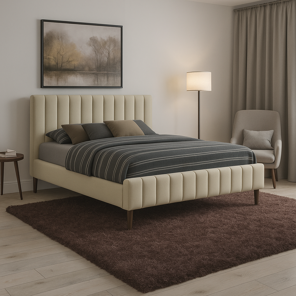 Tablia inalta, capitonata, de 113 cm, imbracata in stofa crem de calitate superioara, nu doar ca arata spectaculos, dar ofera si un sprijin perfect pentru momentele in care te relaxezi citind sau savurand o cafea in pat. Tapiteria rezistenta la uzura pastreaza frumusetea patului ani de zile, iar designul minimalist se potriveste impecabil atat intr-un dormitor modern, cat si intr-unul clasic.