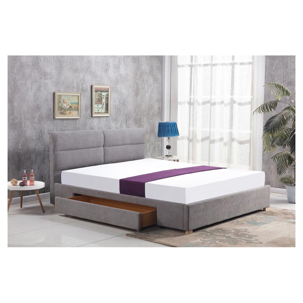 Acest model de pat este prevazut cu suport de tip lamelar pentru saltea.Ā Pentru un plus de functionalitate,Ā Hm Merida gri va ofera un sertar incapator in care puteti depozita lenjerii de pat, perne, cuverturi, etc.