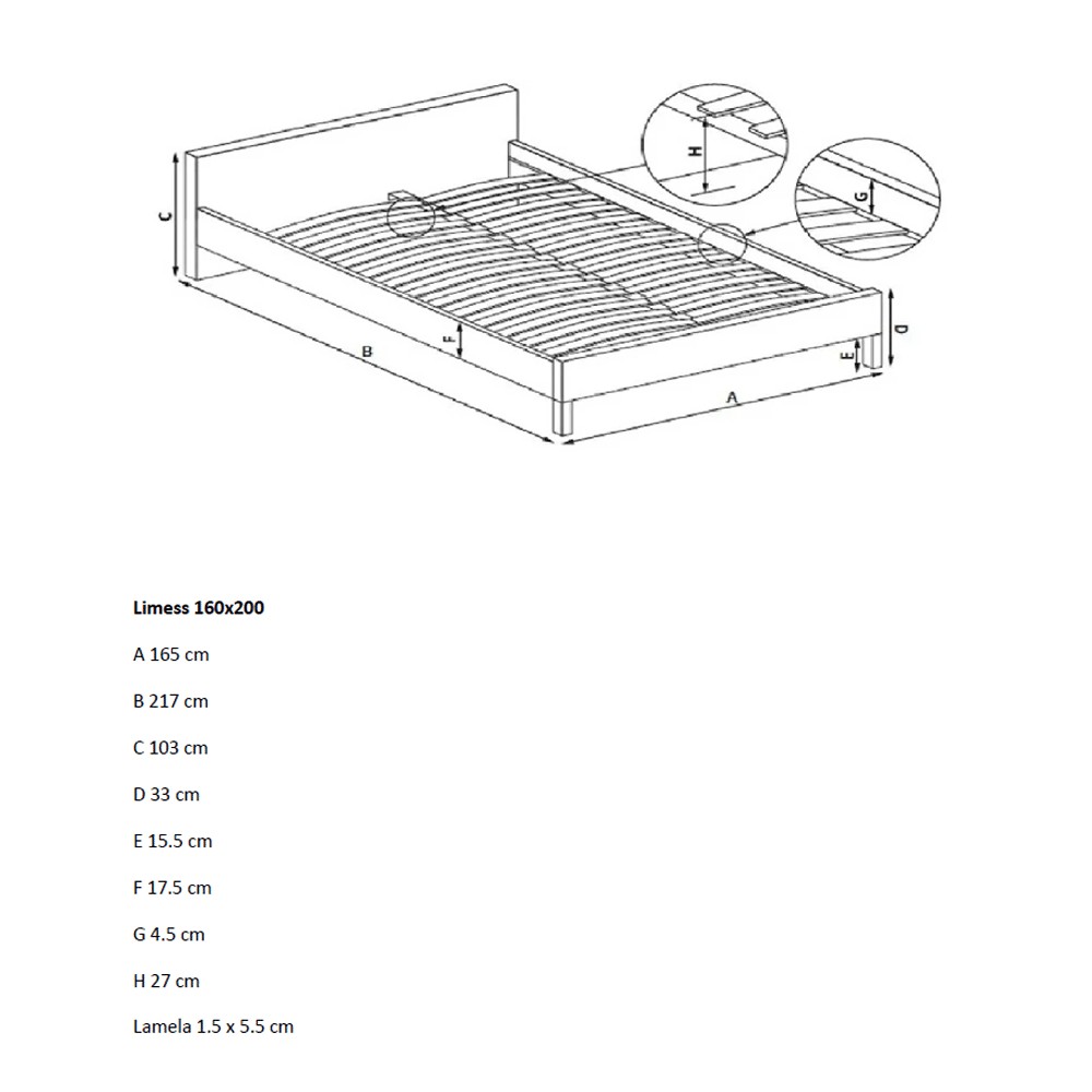 Dotat cu o somiera cu 24 de lamele flexibile si cadru central de sustinere, patul Limess garanteaza distributia uniforma a greutatii si prelungirea duratei de viata a saltelei. Picioarele sale de 15.5 cm asigura stabilitate, dar si o aerisire corespunzatoare a spatiului de sub pat, pentru un ambient sanatos si curat.
