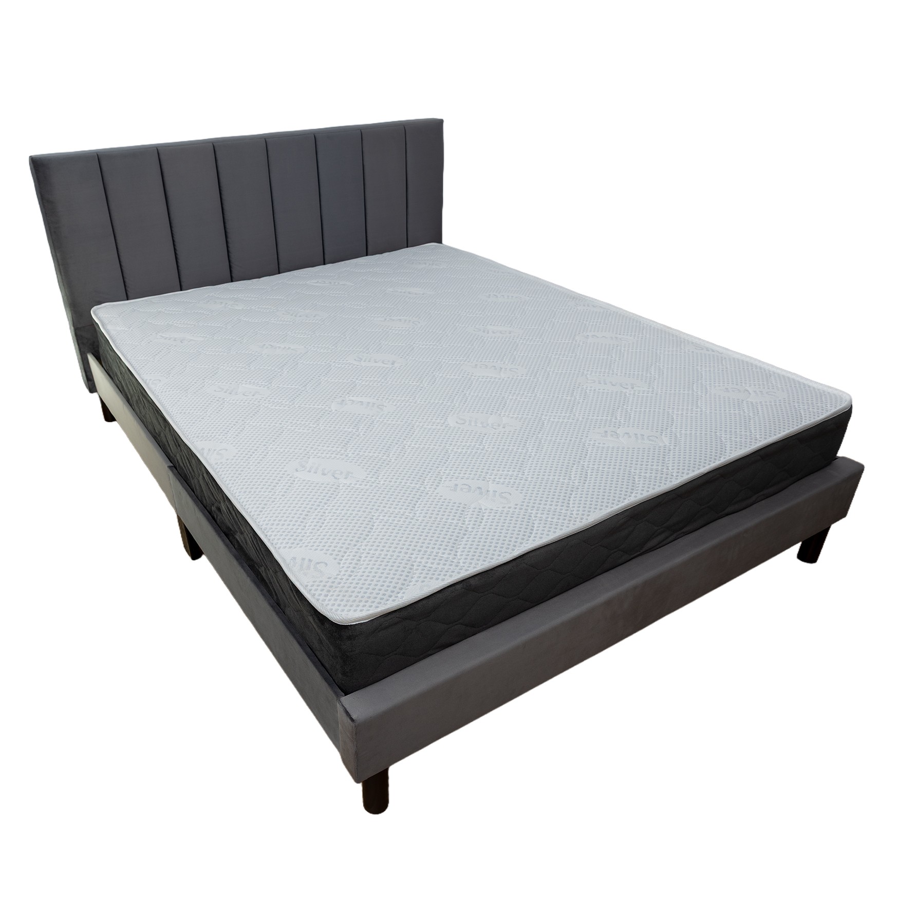 Patul Limess 160x200 cu tablie inalta tapitata in catifea gri aduce eleganta si confort in dormitorul tau. Realizat pe un cadru solid din lemn masiv si completat cu o tablie moale si rafinata, acest pat imbina rezistenta cu stilul modern. Cu somiera flexibila si design sofisticat, este alegerea ideala pentru un dormitor relaxant si plin de rafinament.