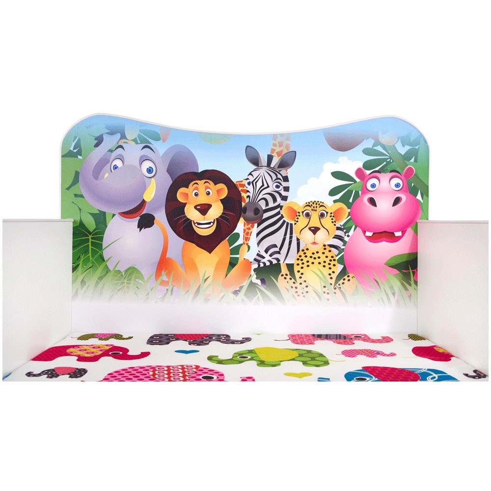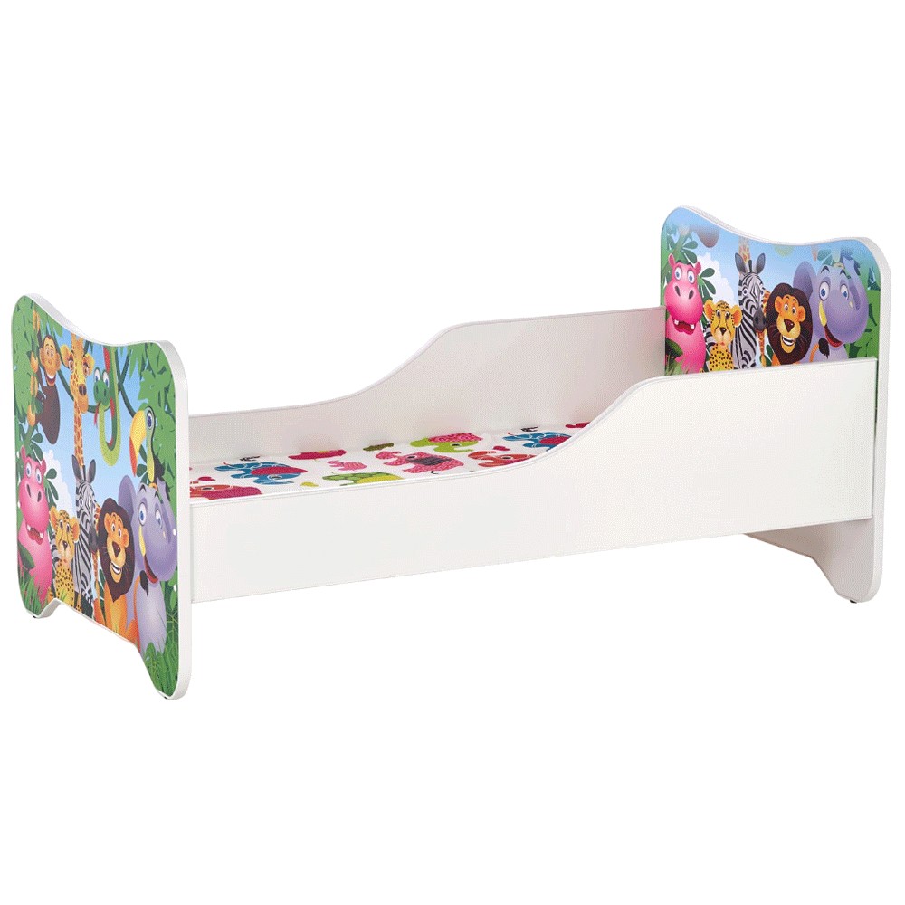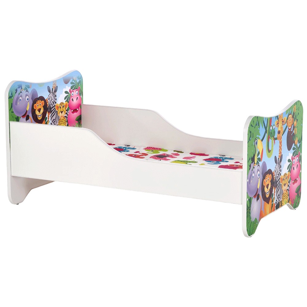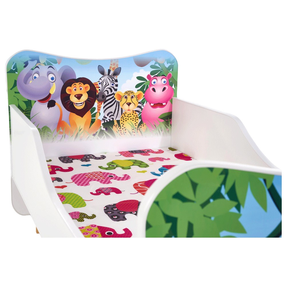 Patul pentru copii cu tematica animalele junglei va aduce veselie in camera celor mici.Â