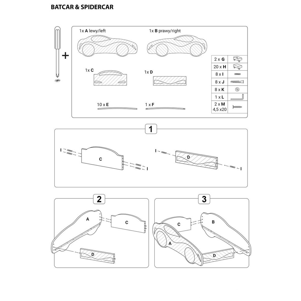 Patutul HM Spidercar este realizat din PAL de calitate si este decorat cu imprimeu in culorii vii ecologice.Â