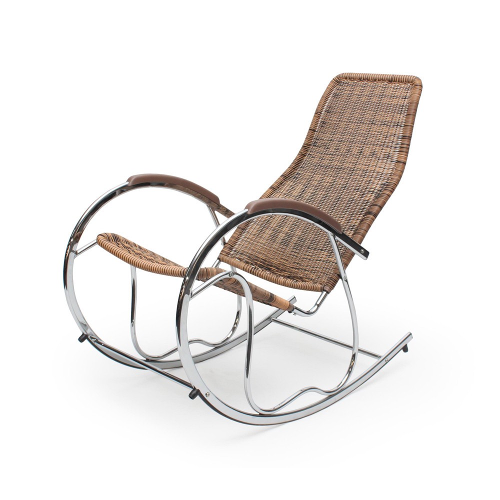 Scaun balansoar HM Ben, ratan sintetic, cadru cromat, 90 kg, maro
