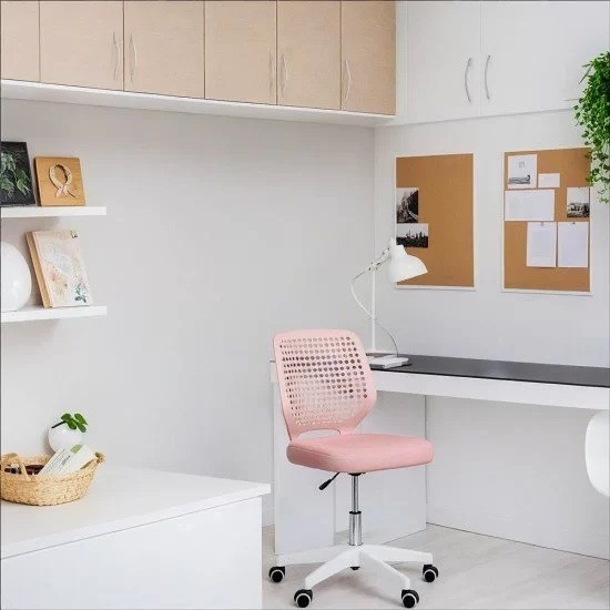 Lipsa bratelor nu este o simpla alegere de design, ci o caracteristica practica: copilul are mai multa libertate de miscare, se poate ridica si aseza cu usurinta si poate trece rapid de la birou la alte activitati fara restrictii. Culoarea roz si stilul modern transforma acest scaun intr-un element vesel si energic, perfect pentru orice camera de copil, fie ea spatiu de invatat sau de relaxare.