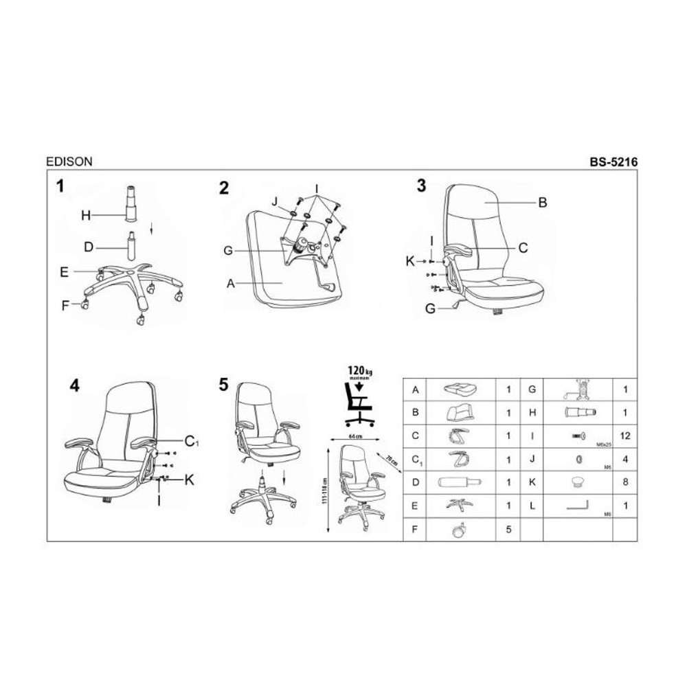 Scaun directorial HM Edison, Cadru Polipropilena, Piele ecologica, Inaltime ajustabila, Sistem Balansare, 120 kg, 118x64x70 cm, Negru