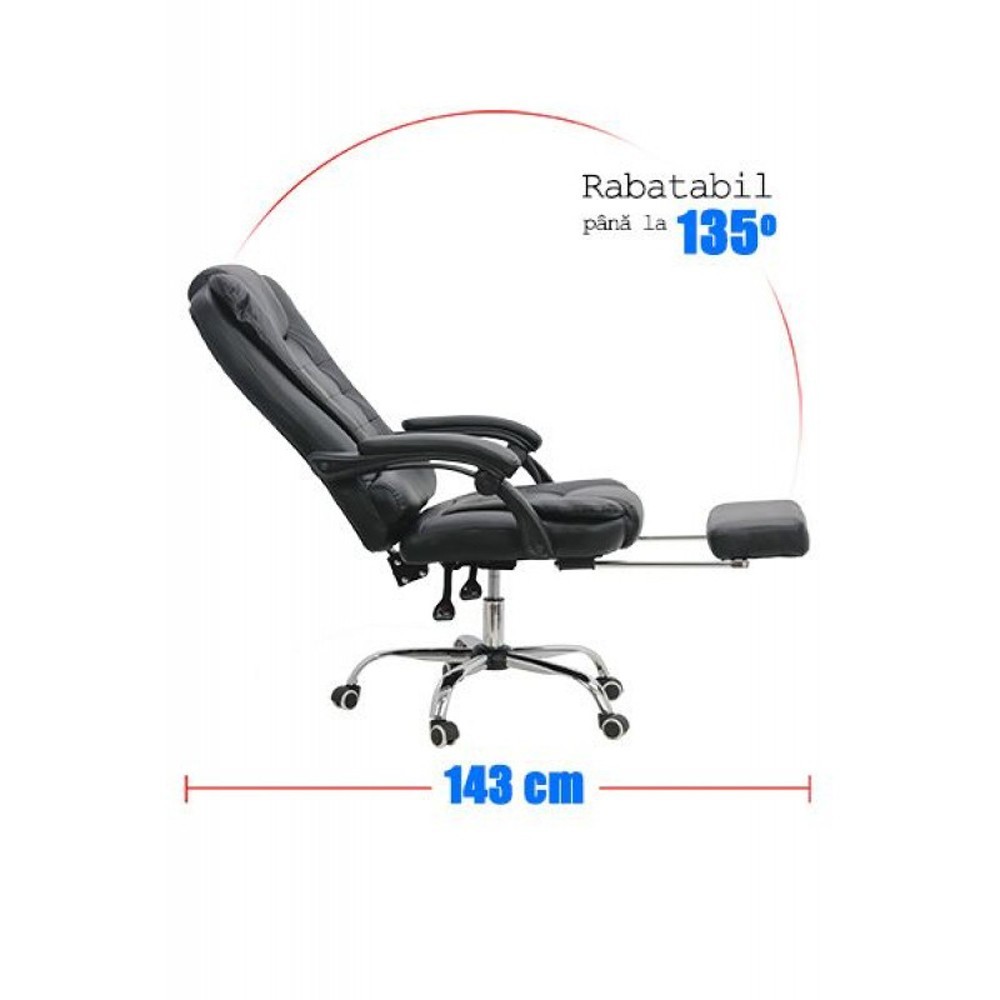 - tapteria scaunului este realizata din piele ecologica de culoare neagra, usor de curatat/intretinut