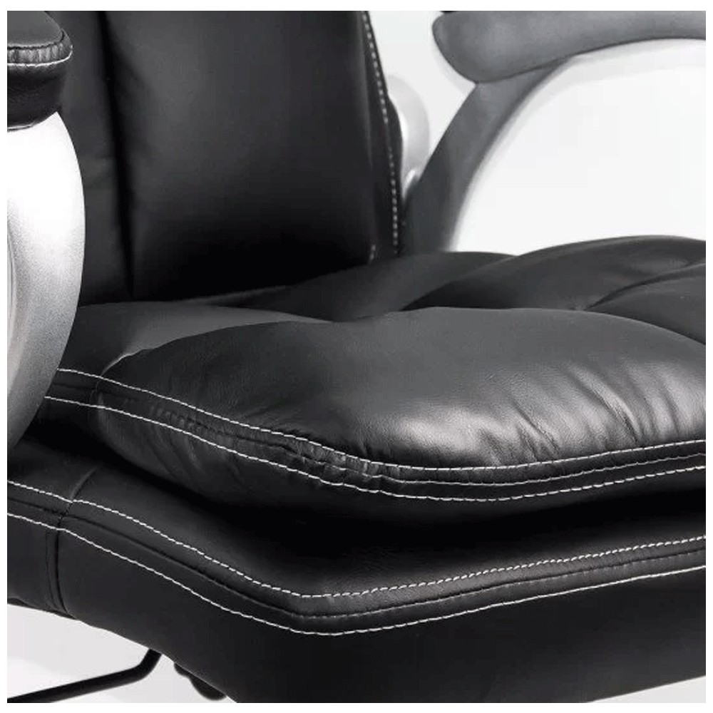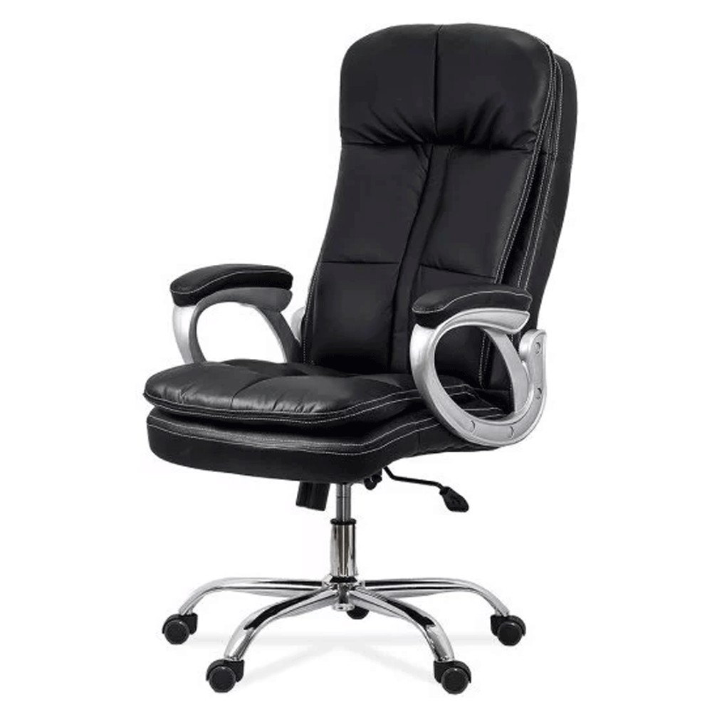 Scaunul este tapitat cu piele ecologica si are un spatar inalt de 76 cm pentru a oferi un sprijin adecvat pentru spate si gat.