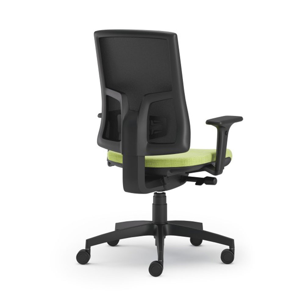 Scaunul Pure are un spătar tapițat cu mesh, care permite aerisirea pielii chiar și în cele mai călduroase zile de vară.