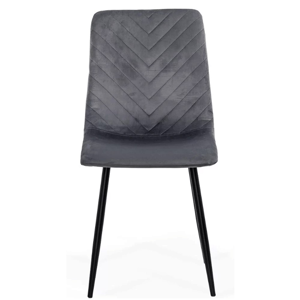 Tapiteria scaunelor din catifea si detaliile cu cusaturi in V imbunatatesc designul si le fac potrivite pentru orice incapere: living sau bucatarie.