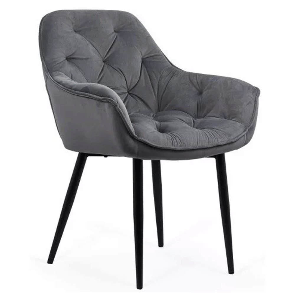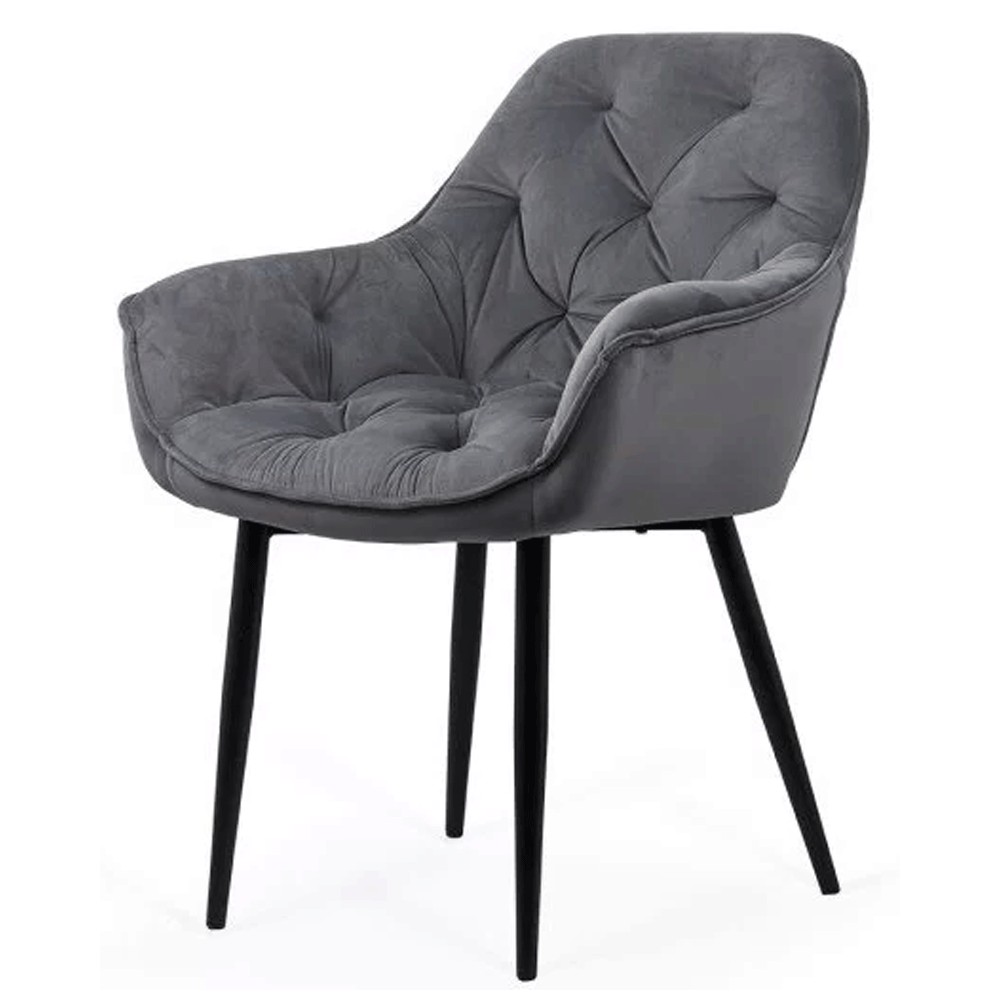 Scaun elegant, modern si comod, realizat pe structura metalica si imbracat in catifea moale si placuta la atingere.