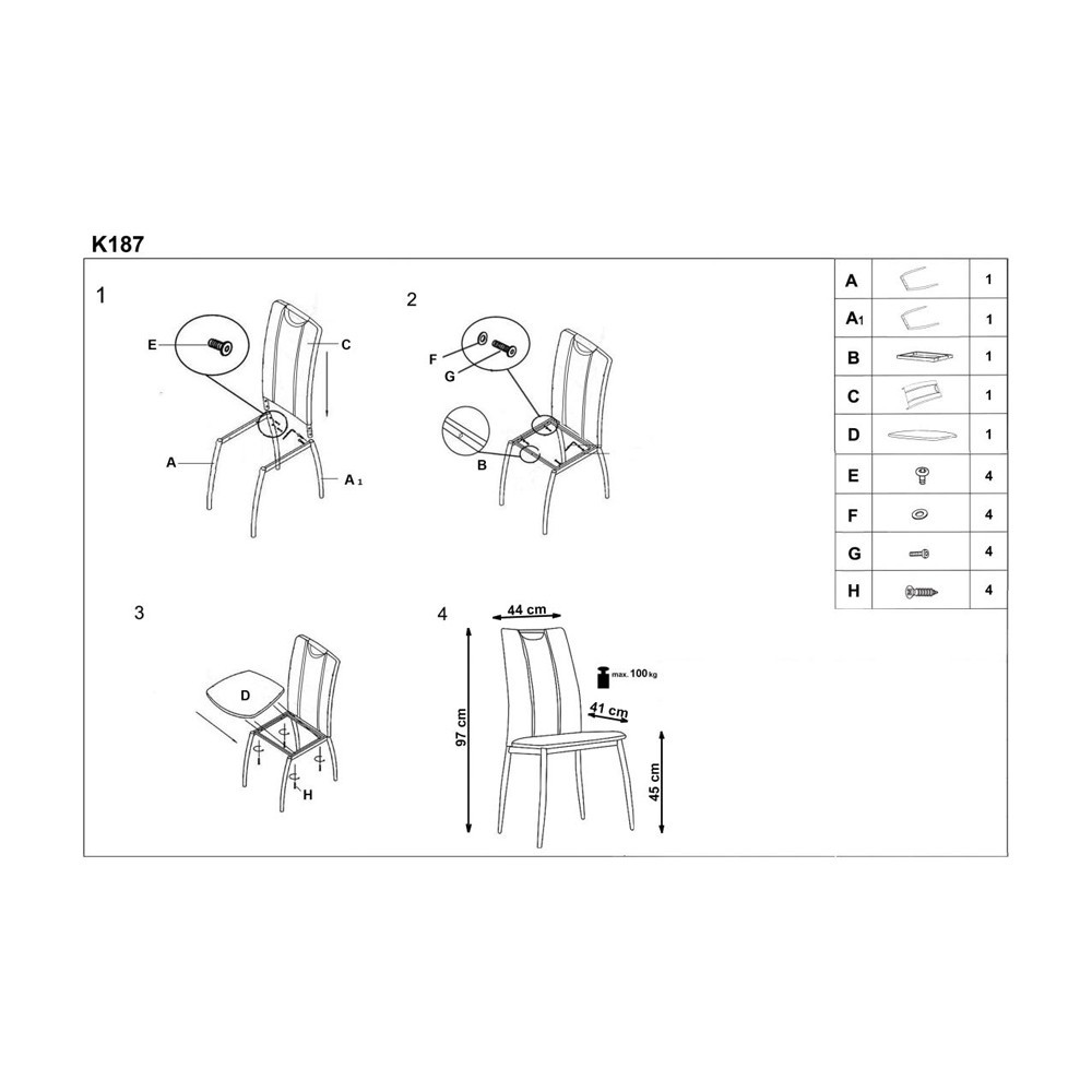 K187 este un scaun cu un desing minimalist care poate fi folosit si intr-o bucatarie moderna. Sezutul si spatarul sunt tapitate cu piele ecologica, iar picioarele sunt din metal cromat. Cusaturile ii confera o nota aparte de eleganta iar spatarul scaunului este prevazut cu maner, pentru a putea fi mutat cu usurinta