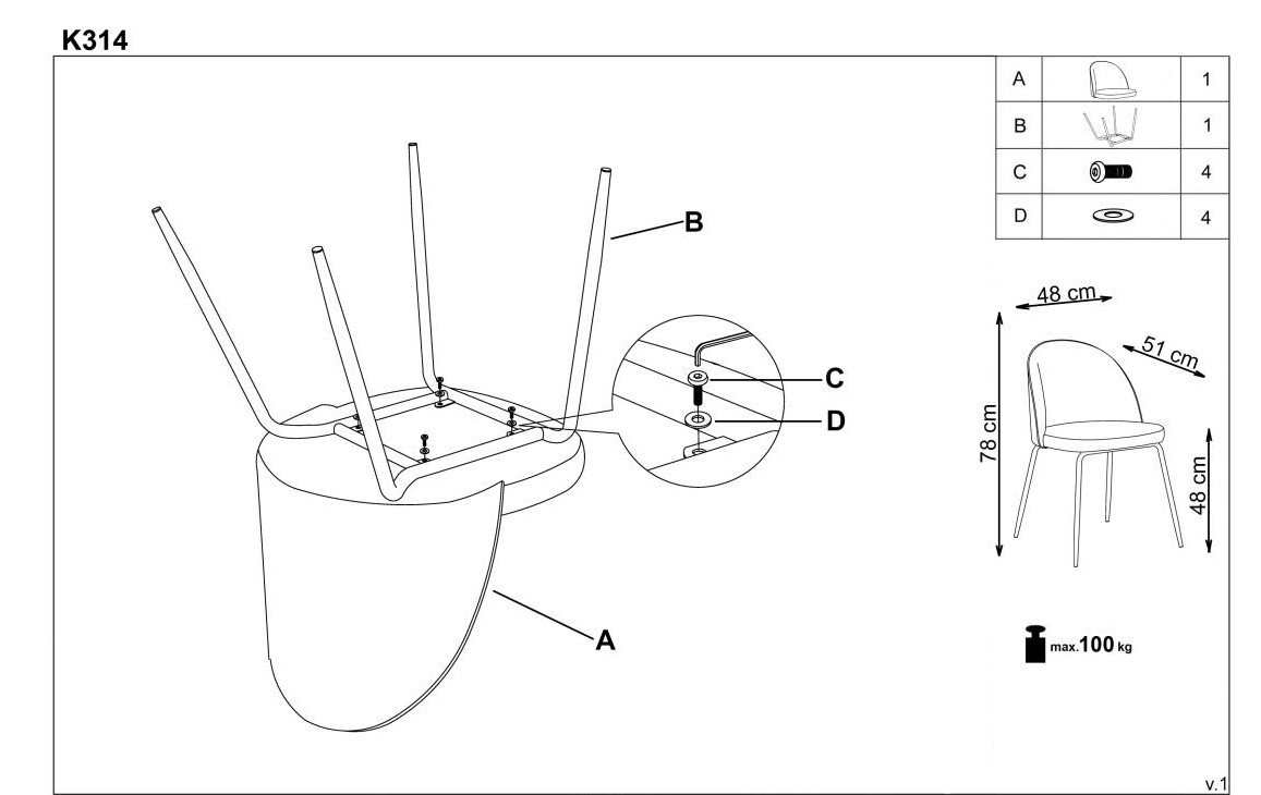 Acest scaun are structura metalica, imbracata in stofa. Pentru un grad de confort marit, sezutul este din spuma poliuretanica.