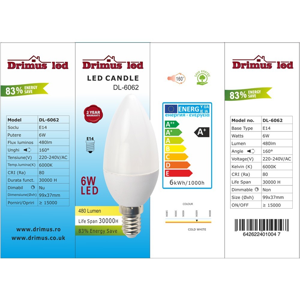 Set 6 Becuri LED 6W Lumina rece cu putere echivalenta unui bec cu lumina incandescenta de 50W. Cu ajutorul acestui bec led consumul de curent electric va fi redus substantial (cu pana la 80% in comparatie cu un bec clasic), in timp ce calitatea si puterea luminii cresc considerabil.